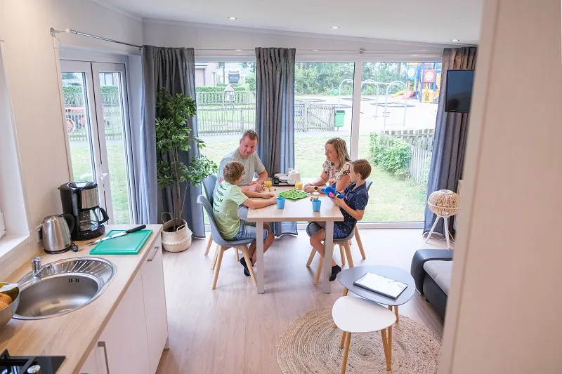 Unsere 4-Personen-Chalets de Luxe sind schöne und moderne Chalets, die komplett ausgestattet sind. Die Chalets befinden sich an verschiedenen Standorten. Sie können ein Chalet in ruhiger Lage, nur wenige Gehminuten von den Einrichtungen entfernt, gegenüber dem großen Spielplatz / Streichelzoo mit Voliere oder in schöner Lage gegenüber dem Spielstrand und dem Angelteich wählen.