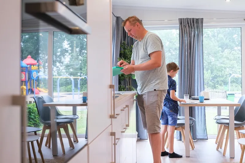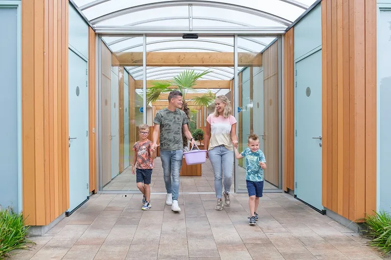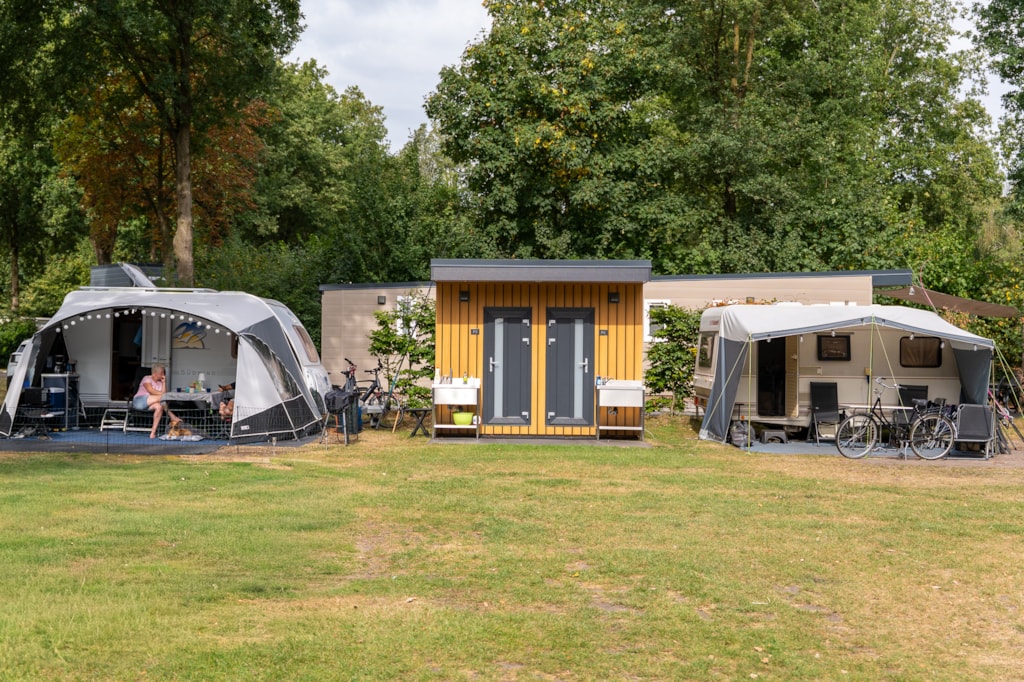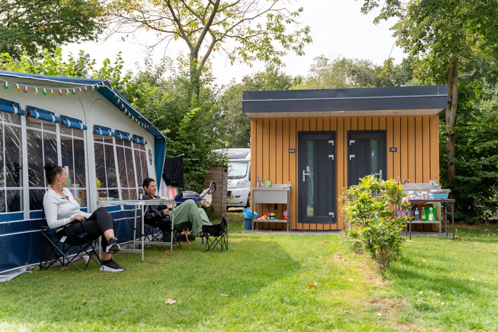 Auf dem Campingplatz „De Pallegarste” können Sie mit eigenen luxuriösen Sanitäranlagen inklusive Geschirrspüler und Kühlschrank campen.
