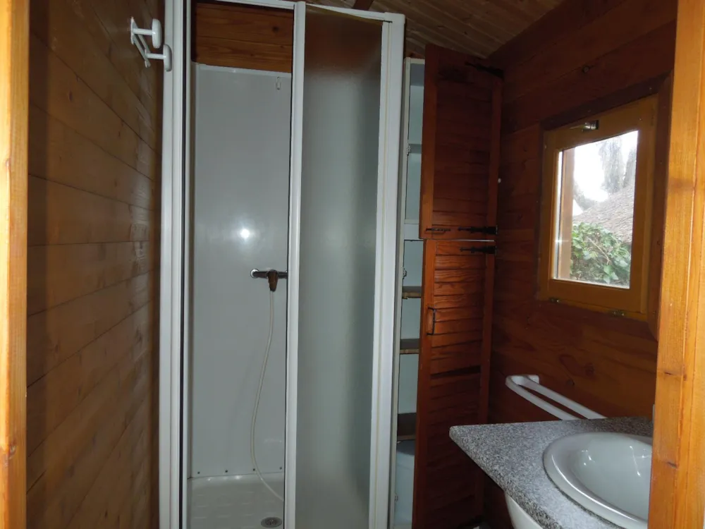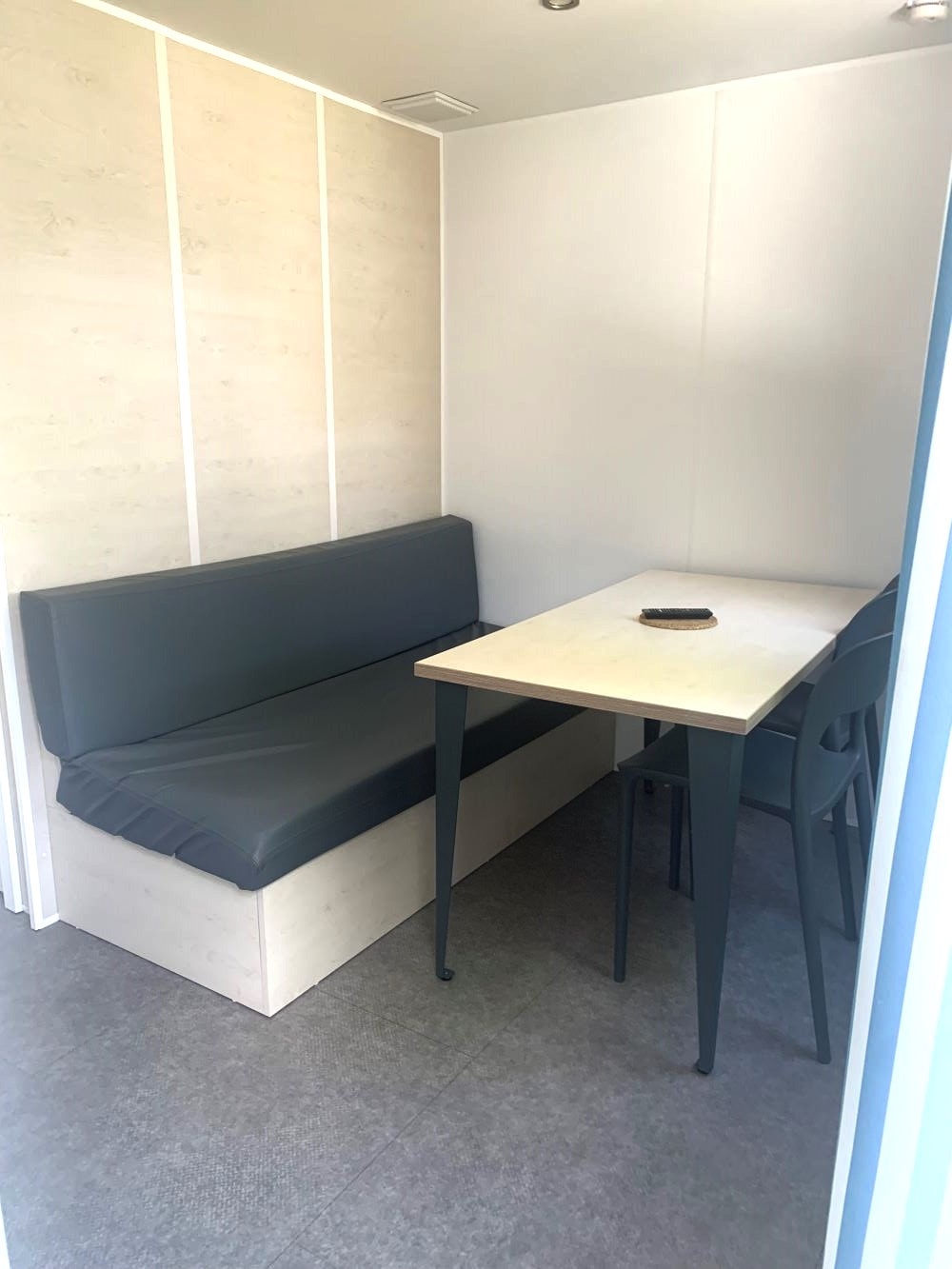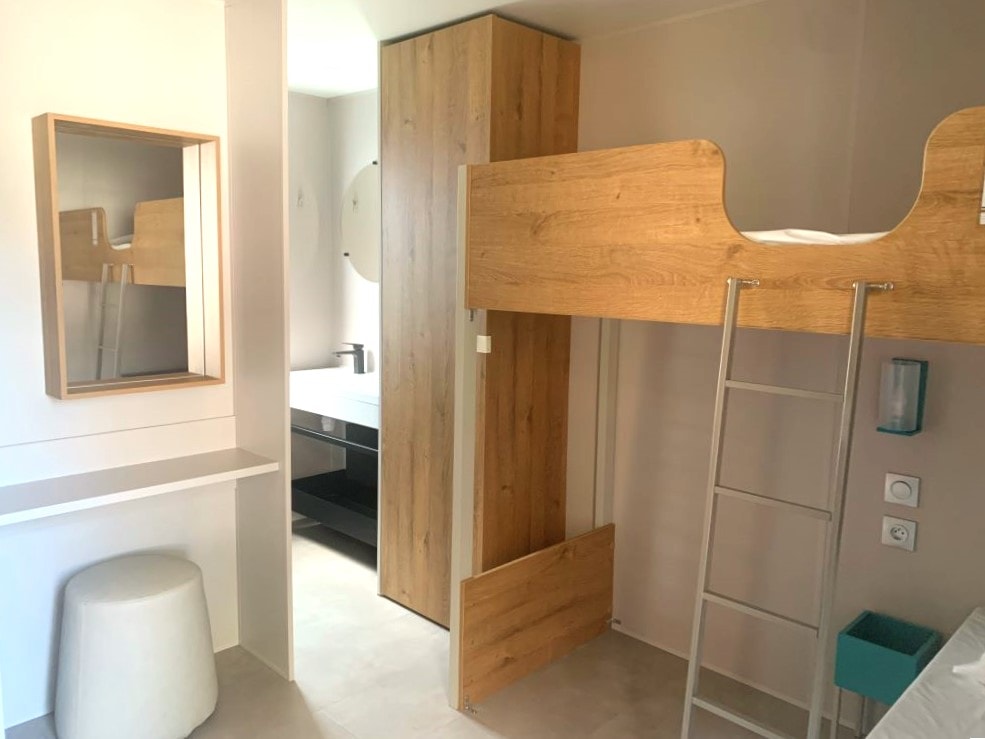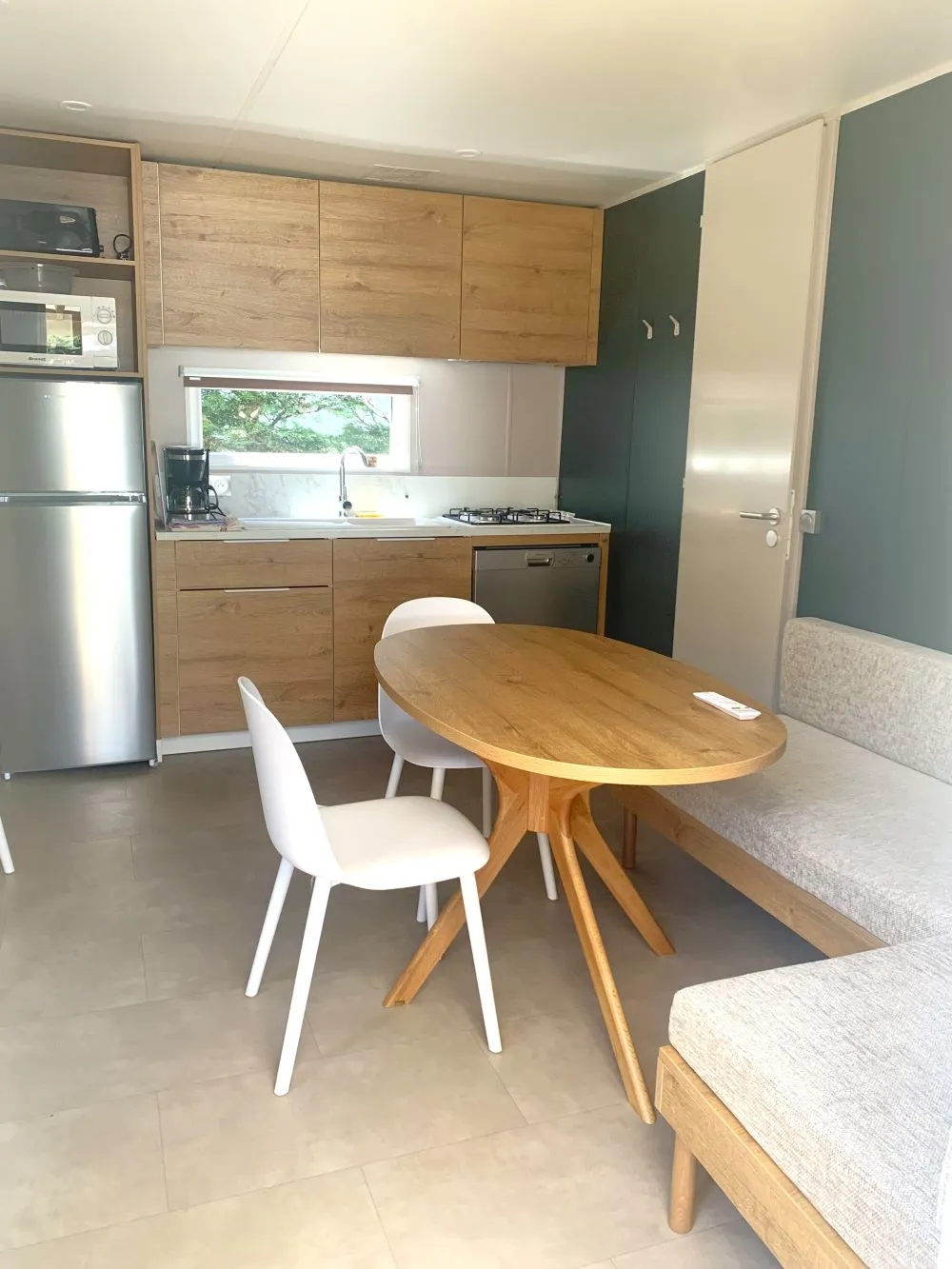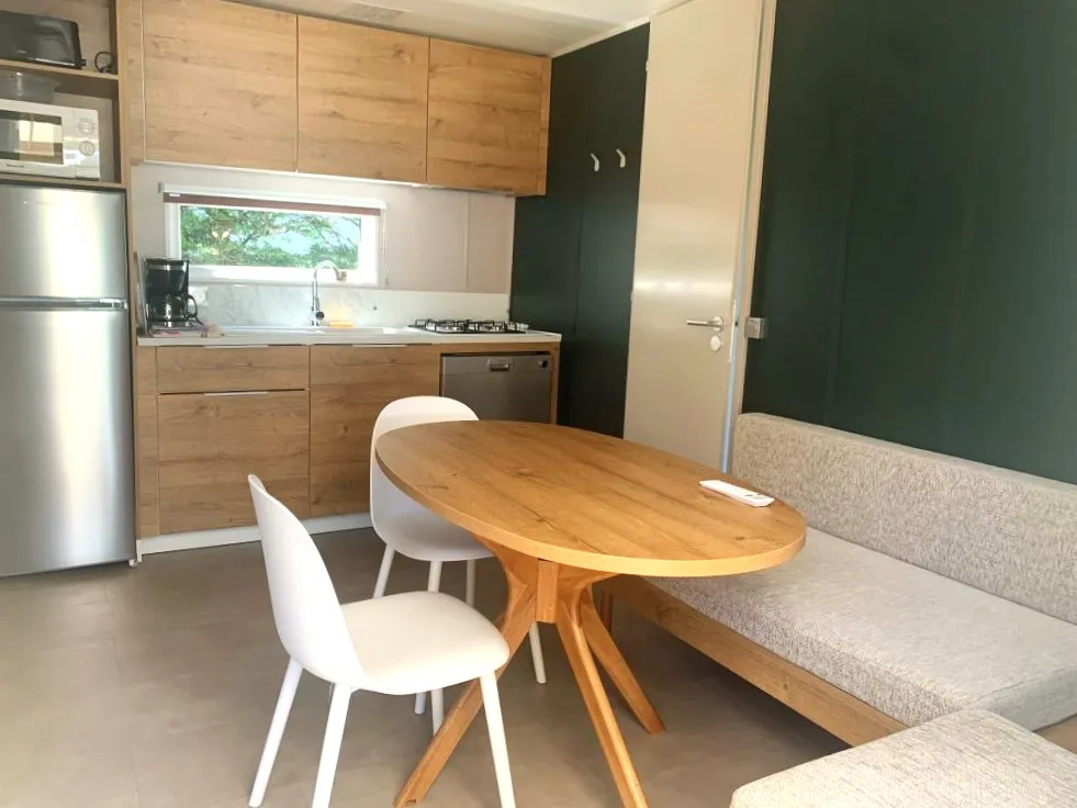 1 Schlafzimmer, Bad, Wohnzimmer, Küche, Toiletten, Terrasse aus Holz
