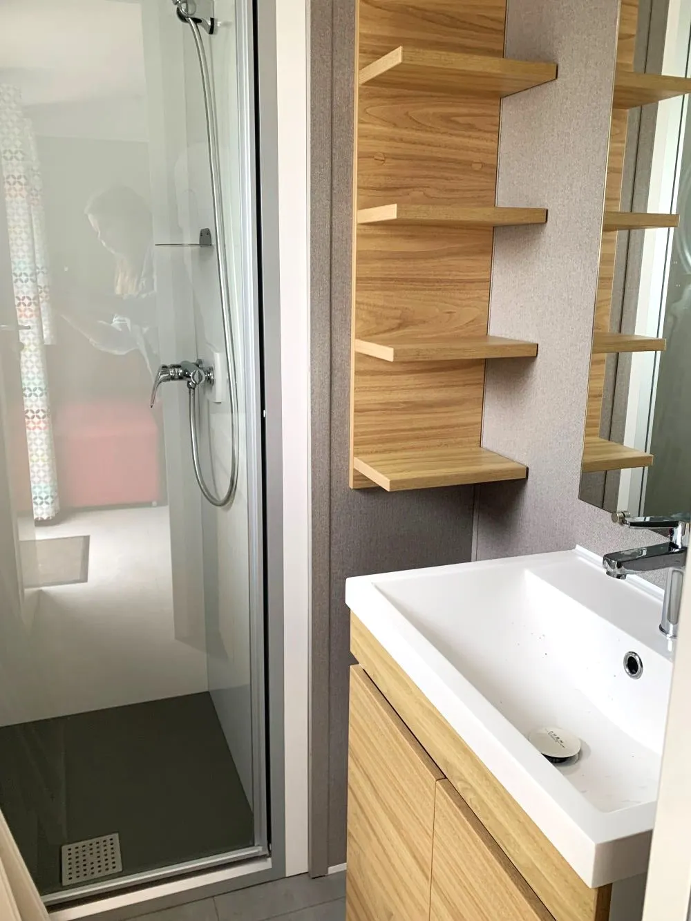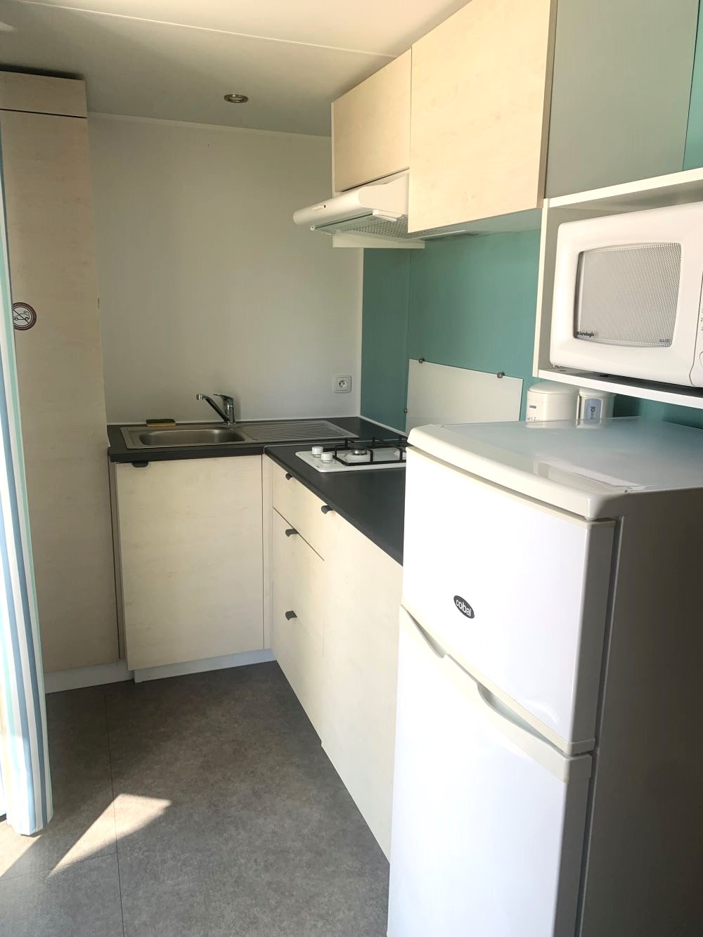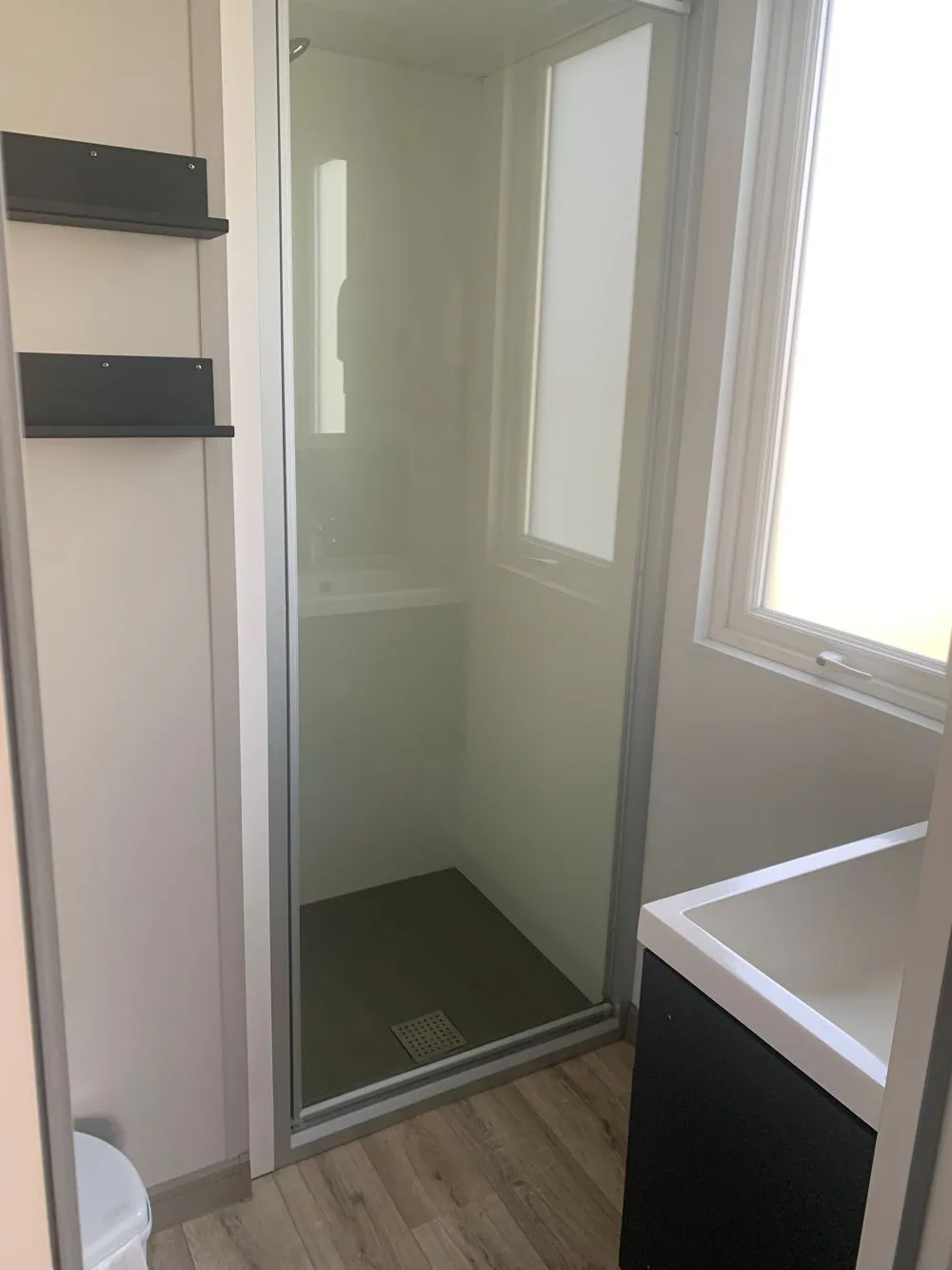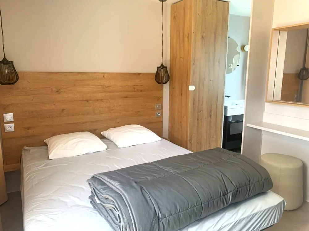 1 Schlafzimmer, Bad, Wohnzimmer, Küche, Toiletten, Terrasse aus Holz