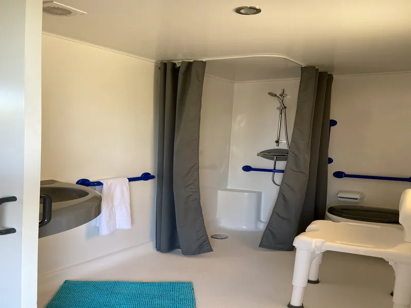 Premium Package (comfort package + cabin with shower, washbasin, toilet and kitchenette with table top refrigerator, 2 gas burner cooker and microwave) between 110m2 and 130m2