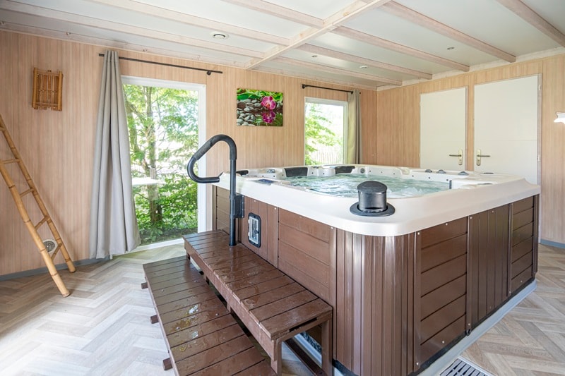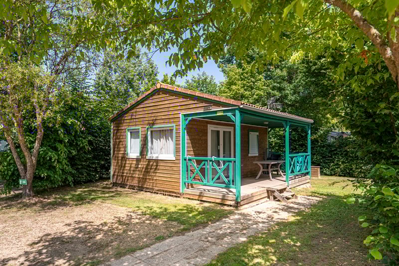 Attractive canvas accommodation on wooden floor without sanitary facilities close to the sanitary block.