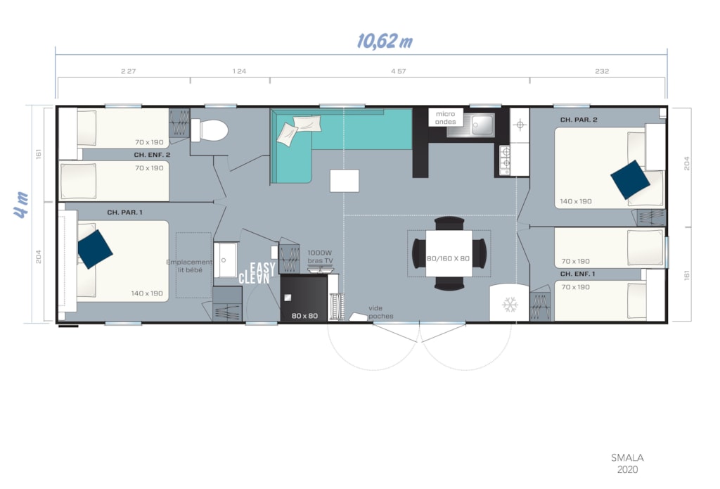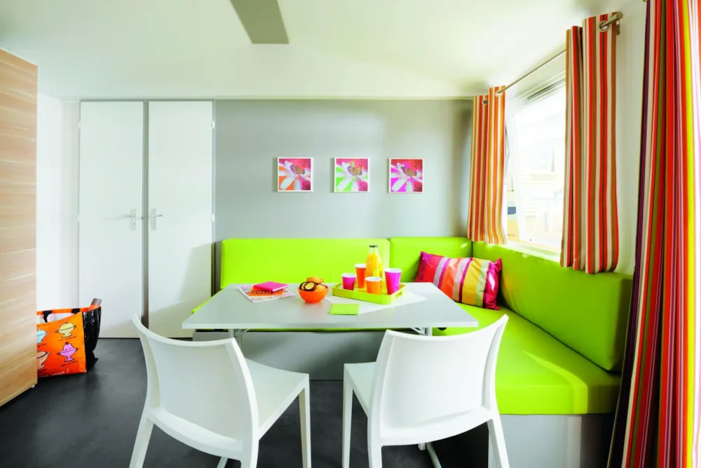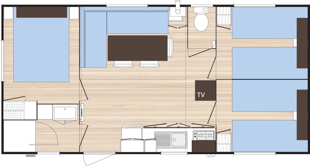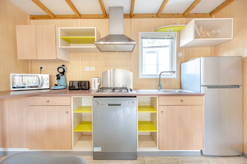 Das 3-Schlafzimmer-Mobilheim "Garden" mit kostenlosem WLAN verfügt über 2 Fernseher, einen Geschirrspüler, Klimaanlage (neu im Jahr 2026) und eine großzügige Wohnfläche :