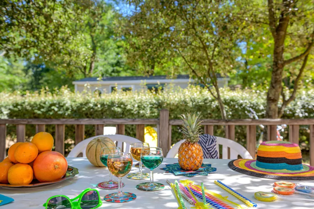 - Jede Unterkunft verfügt über 2 Terrassen mit 3 verschiedenen Atmosphären: Das Wohnzimmer öffnet sich auf eine überdachte Holzterrasse mit Tisch, Gartenstühlen und einer Gas-Plancha, um Ihre Mahlzeiten mit der Familie in einer idyllischen Umgebung zu genießen.