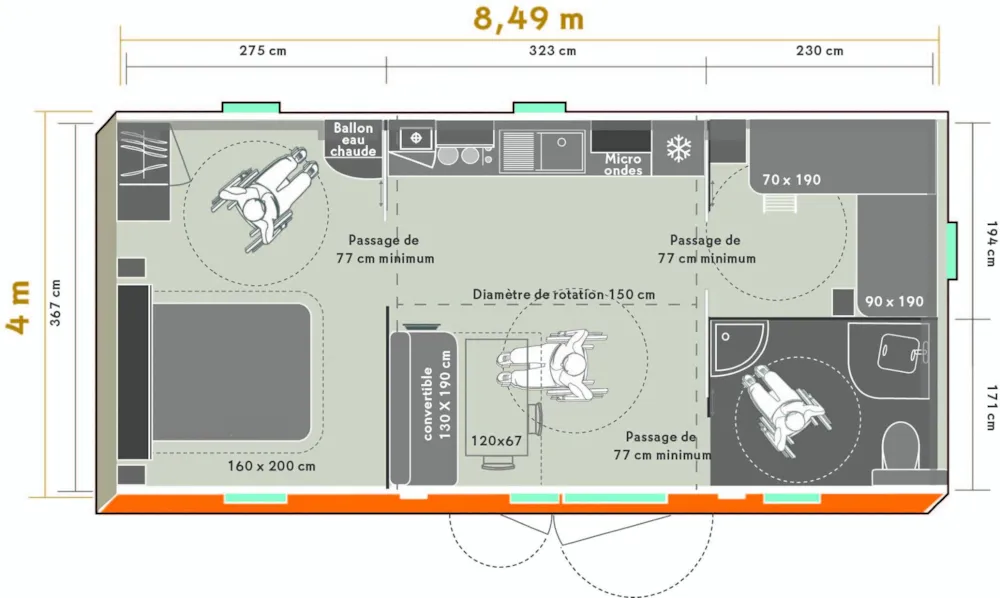 - Doppelte Funktionalität: private Küche und privater Sanitärbereich