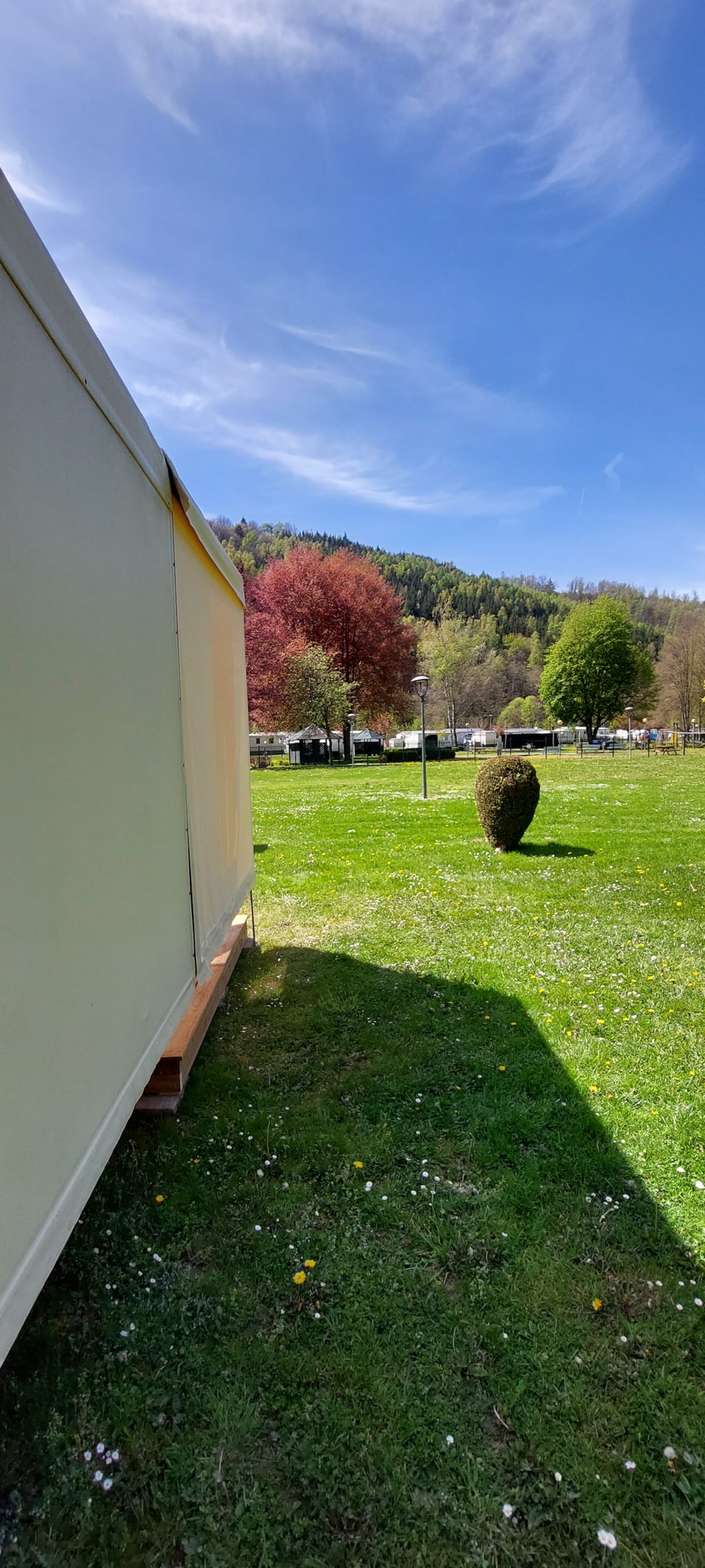 Sehr große Stellplätze, nette Rezeption.