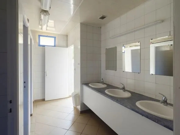 Die Sanitäranlagen sind alt, unansehnlich und müssten dringend erneuert werden. Dazu kommt, dass sie verschmutzt waren und die Abläufe der Duschen so verstopft waren, dass der ganze Gang unter Wasser stand. Es gab weder Toilettenpapier noch Seife ( war nicht leer, sondern überhaupt nicht vorhanden). Wir sind aufgrund der unzumutbaren Sanitäranlagen trotz Vorauszahlung schon nach einer Nacht abgereist.