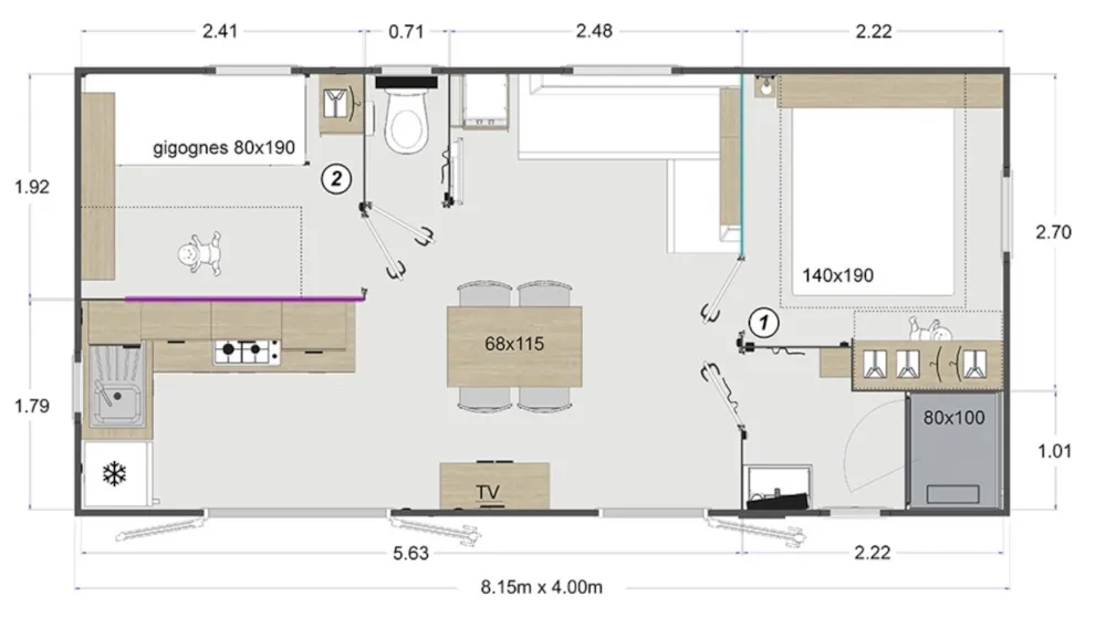 Ce chalet moderne, d’une superficie de 48 m² propose 8 couchages équipés d’une prise électrique et d’un espace de rangement. Le logement est chauffé. Une agréable terrasse permet de profiter des extérieurs.