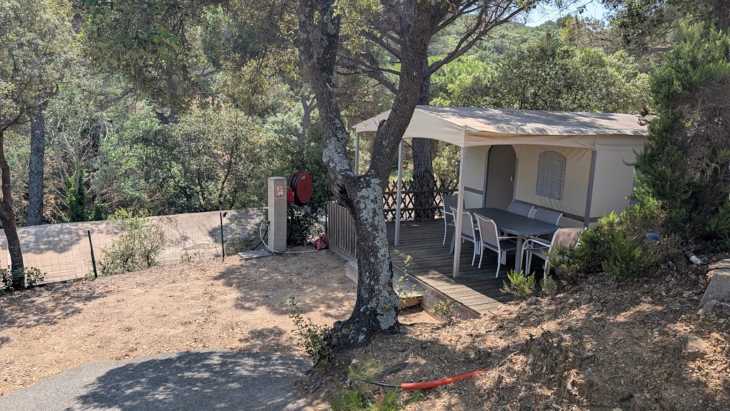 Tenmidden van de kenmerkende mediterrane begroeiing en volop profiterend van schaduwgevende majestueuze kurkeiken en parasoldennen. Een groot aantal deze staanplaatsen bevindt zich op verborgen terrassen tegen een beboste heuvel. Veel van deze locaties bieden dan ook een schitterend uitzicht op de Middellandse Zee en het Esterel-gebergte.