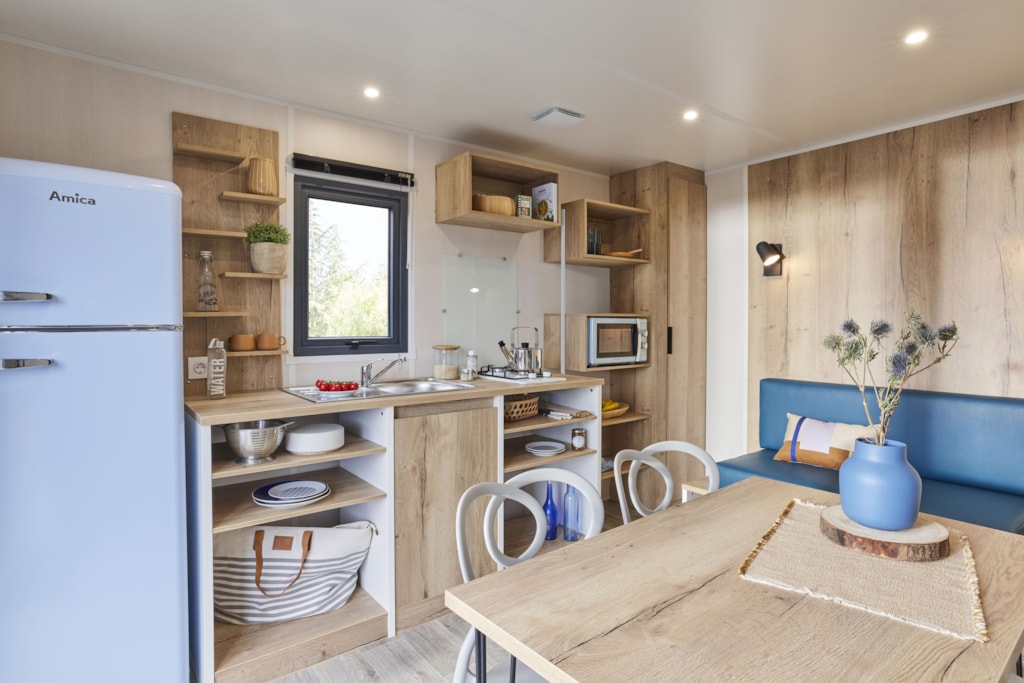 Envie de vous évader et de vivre expérience inoubliable ? Embarquez dans notre tout nouveau mobil-home « Côté Mer » et laissez-vous séduire par son ambiance bord de mer.