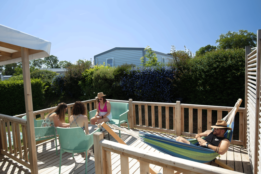 Vous recherchez le confort comme à la maison ? Laissez vous tentez par notre tout nouveau mobilhome PMR. Spécialement conçu pour répondre à vos besoins, ses équipements sont préconisés par le label Tourisme et Handicap. Profitez d'une terasse 100% accessible et semi couverte rien que pour vous.