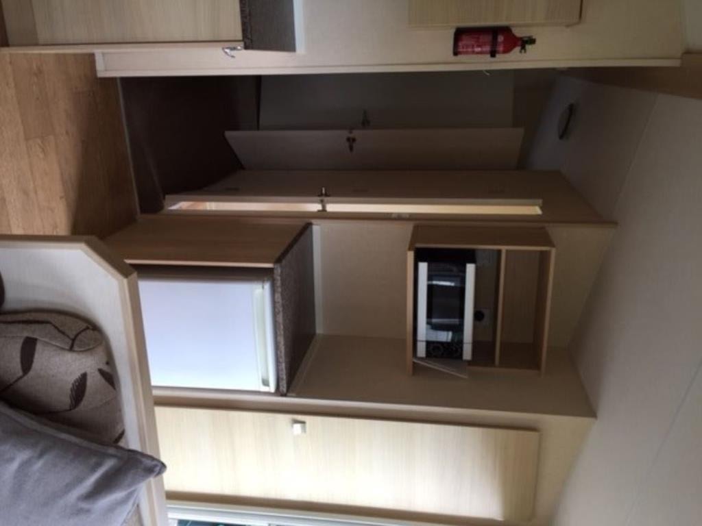 Ausstattung: Wasserkocher, eine doppelte und zwei einzelne Matratzen in eingebauten Betten, zwei Mehrfachsteckdosen, Innenlicht, klappbarar Tisch, ein Picknicktisch oder normaler Tisch mit Stühlen im Aussenbereich.