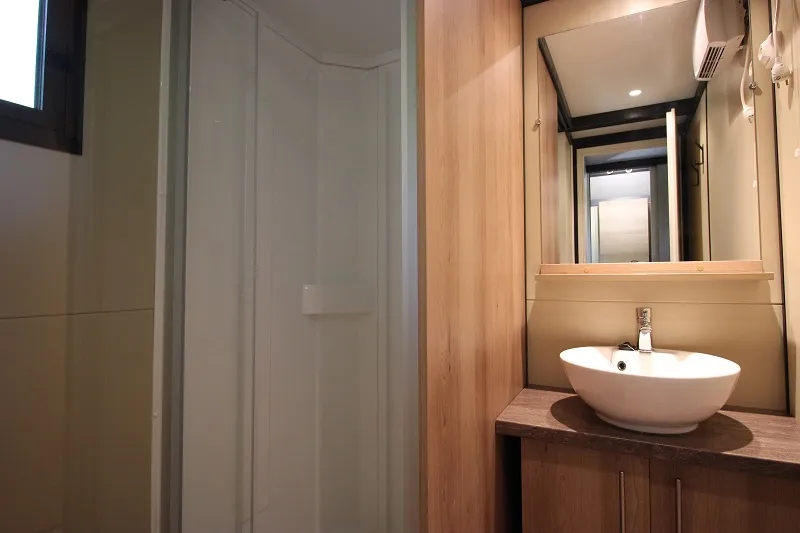 This very comfortable model, ideal with family or friends with its 2 bathrooms! You will appreciate its 2 bedrooms with private shower room and separate WC, storage, dressing table / desk with socket, mirror and booster seat in each bedroom. The kitchen is bright thanks to its horizontal and modern window with a high table and 4 stools. Its strengths : a living room with television, the possibility of putting a cot in the parents' room, a hair dryer in the master bedroom bathroom. Take advantage of garden furniture and 2 relax chairs to relax in the sun!