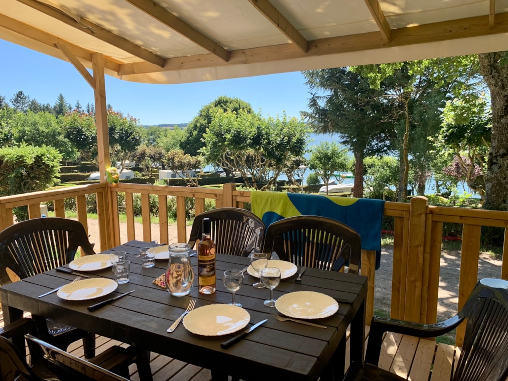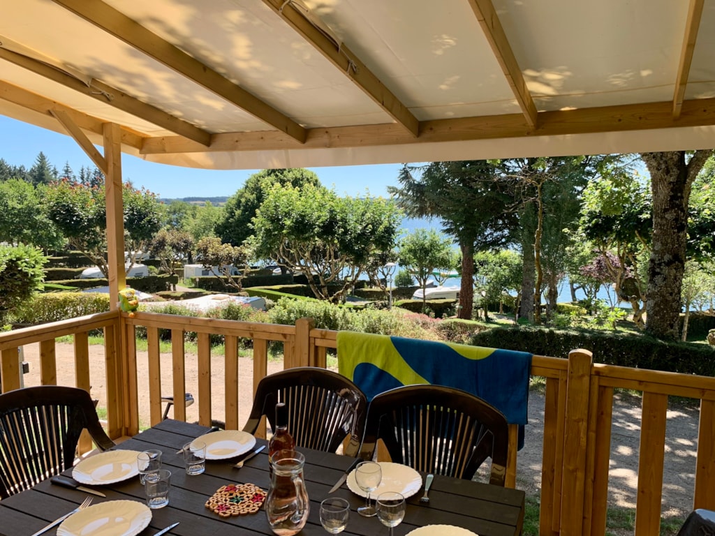 Ankunft nach 15 Uhr Abreise vor 10 Uhr. Mobilheim mit 3 Schlafzimmern (2023), 36m2 + 15m2 überdachte Terrasse, in einem ruhigen Teil des Campingplatzes mit schönem Blick auf den See gelegen.