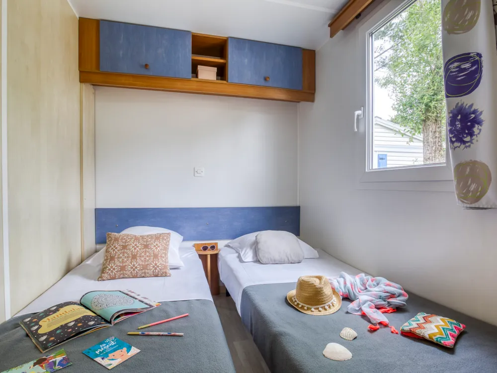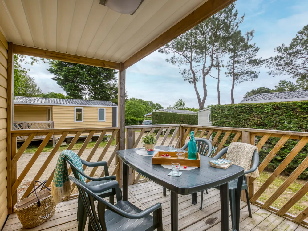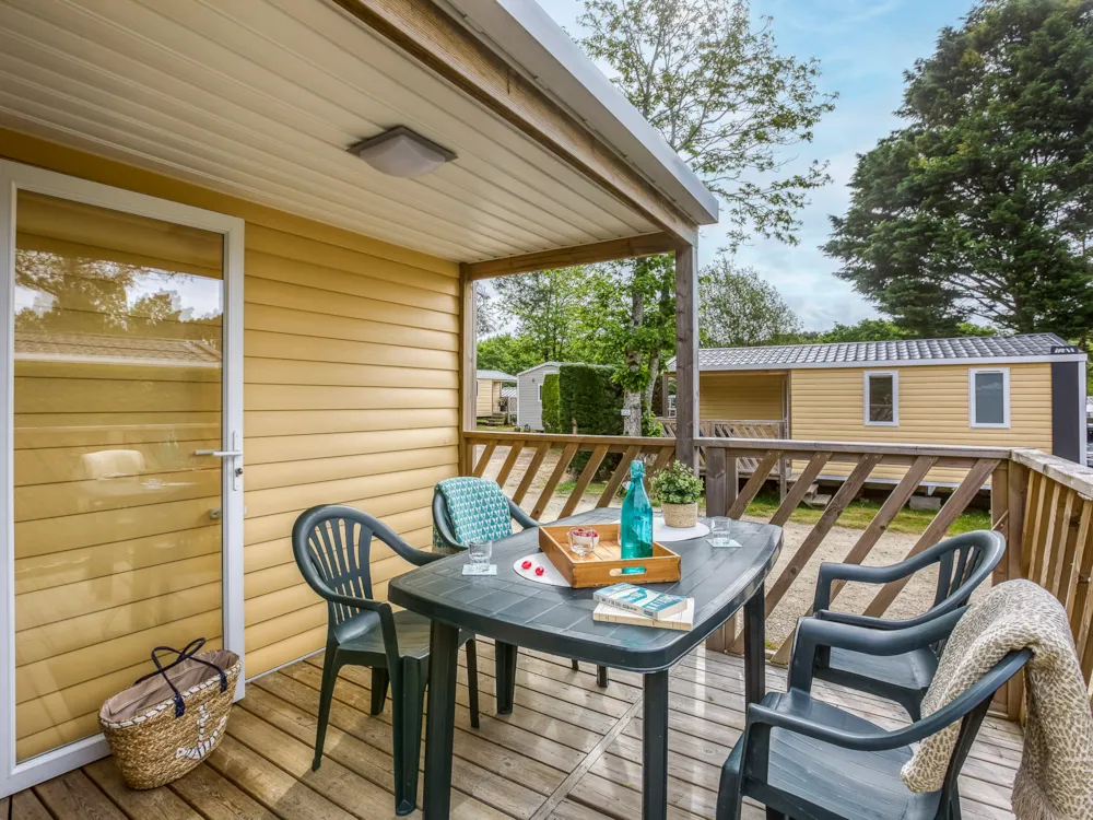 Geräumiges Mobilheim und Terrasse, gehobene Ausstattung, ideal für einen unvergesslichen Aufenthalt.