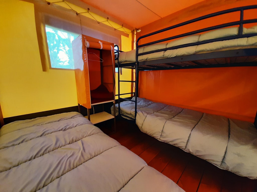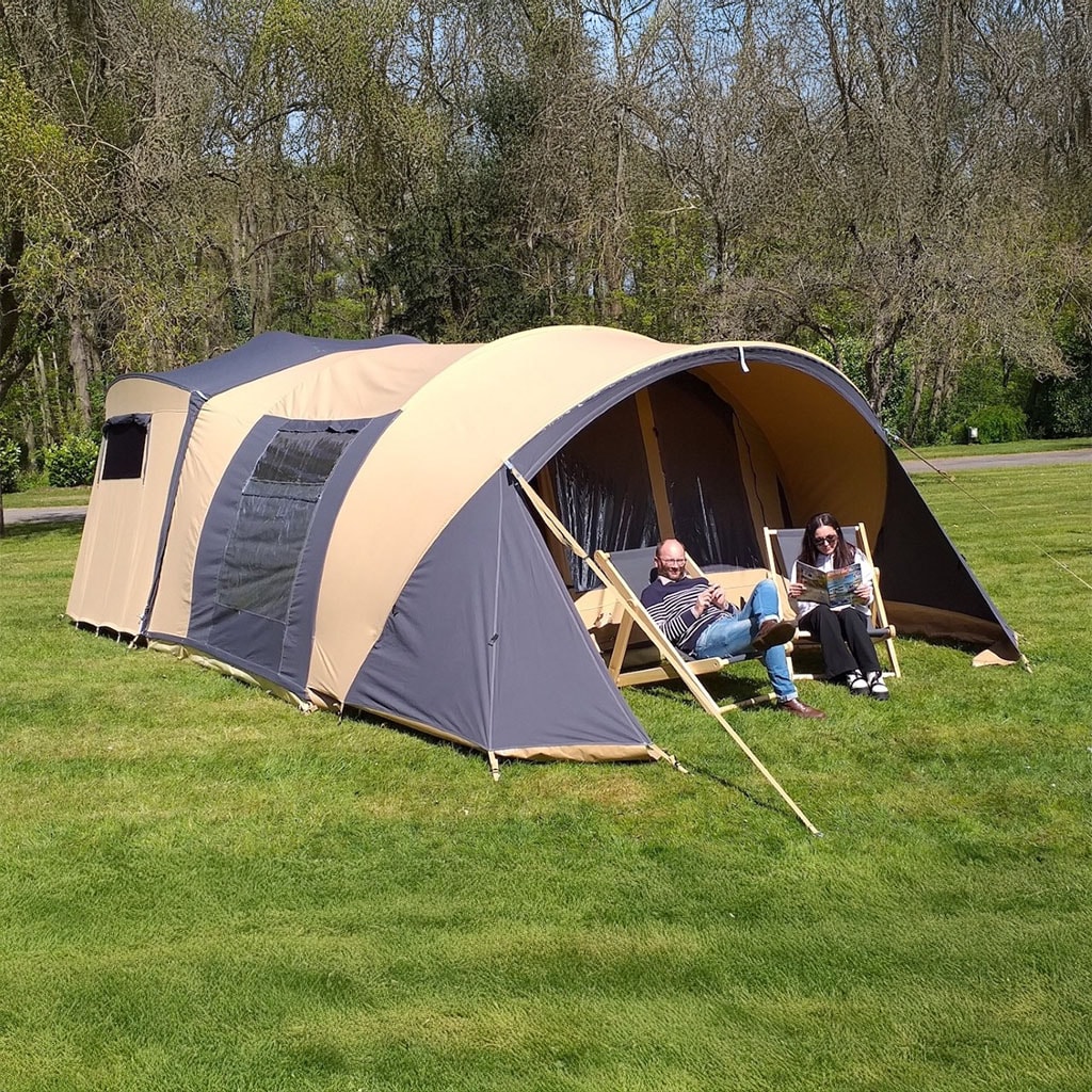 Tente sur pilotis Mooréa de chez Trigano avec coin cuisine sous plancher