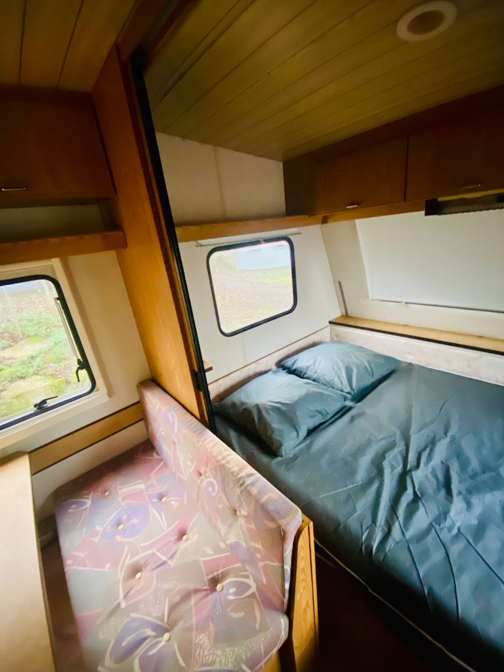 - Un coin séjour avec banquette BZ convertible et télévision,