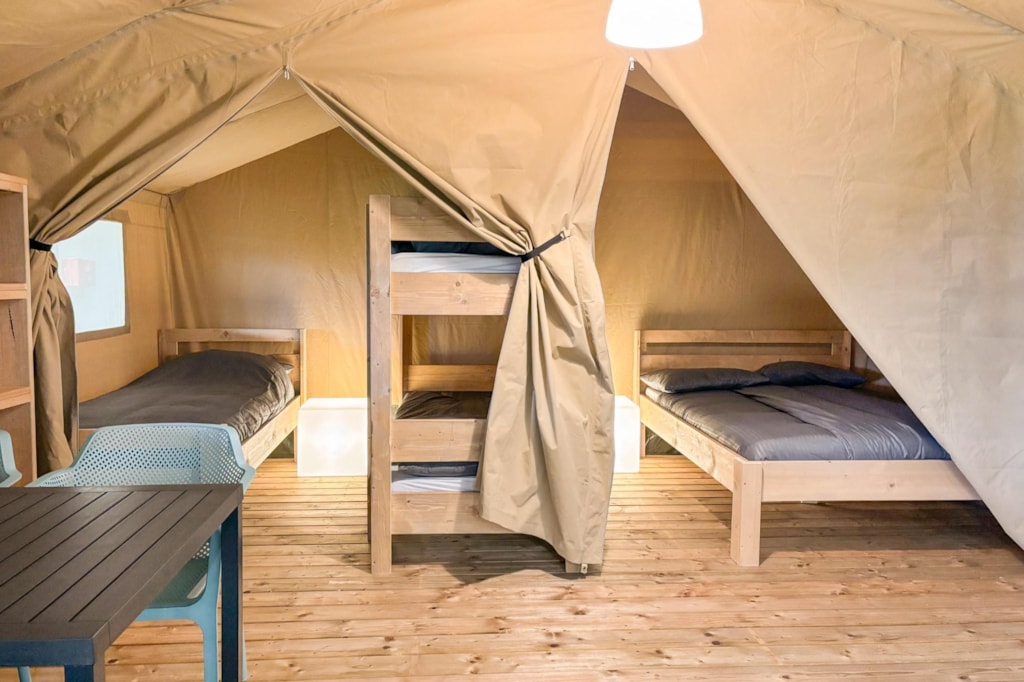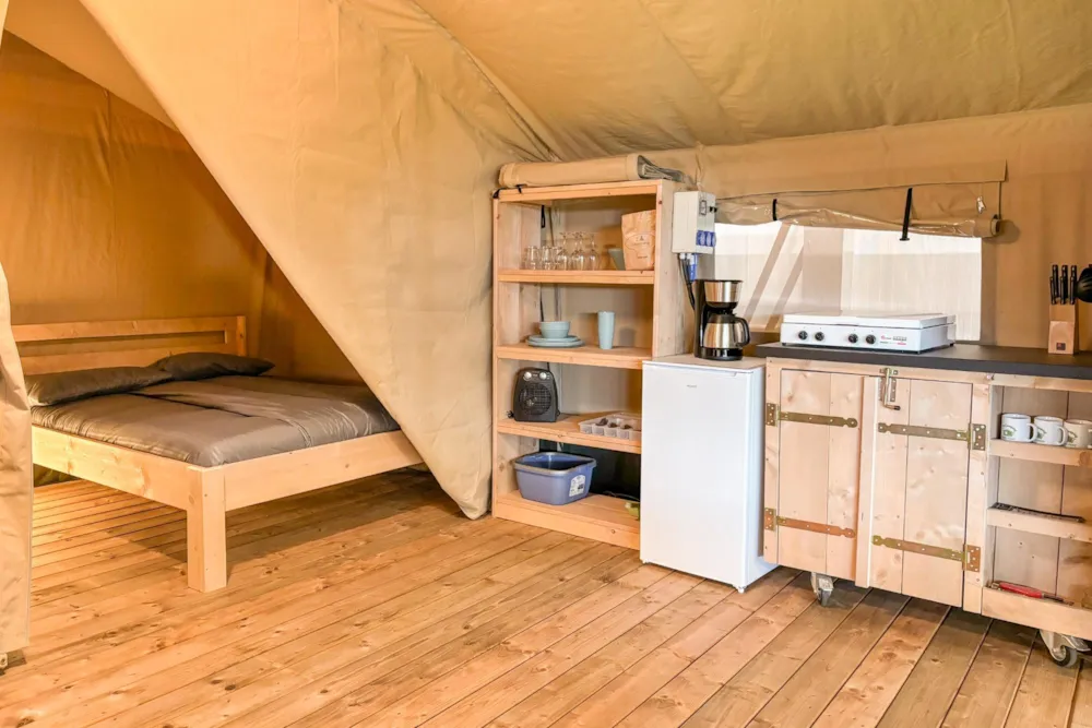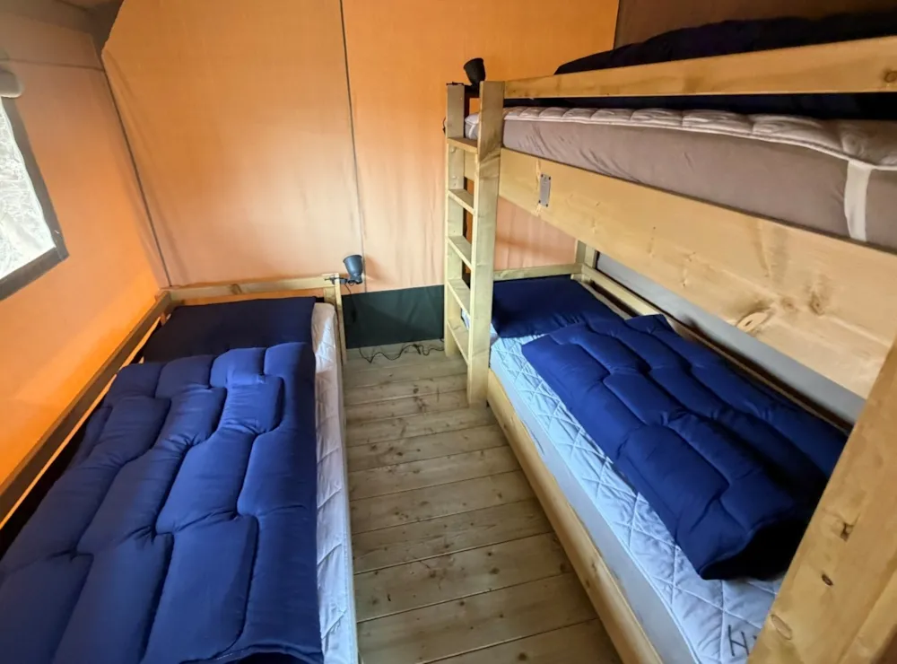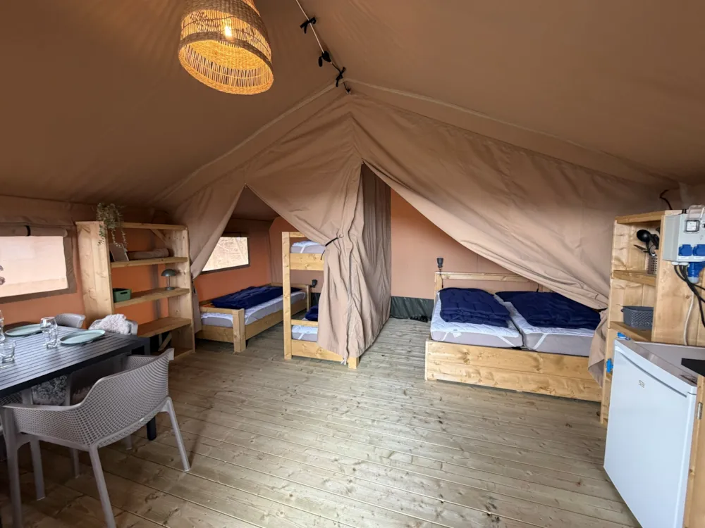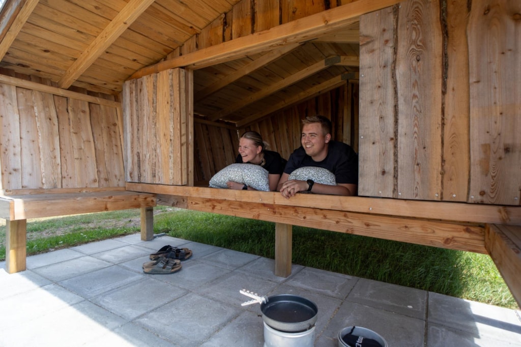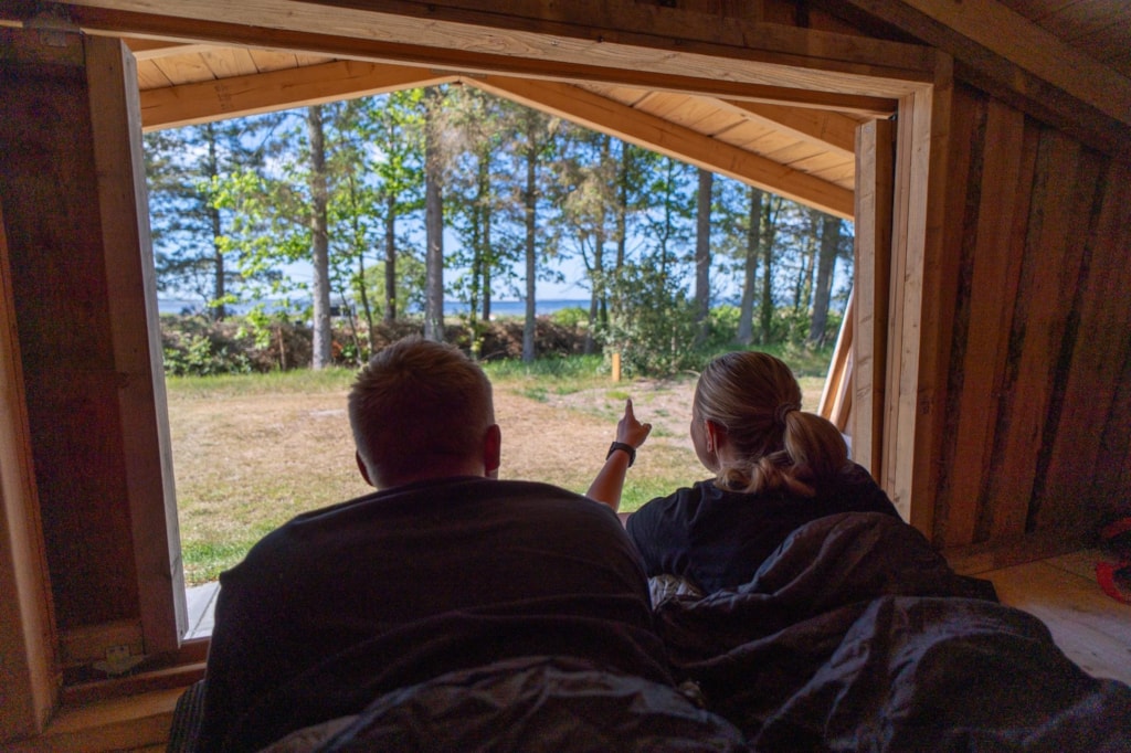 Die Hütte bietet Platz für fünf Personen – aufgeteilt auf zwei Schlafzimmer mit Doppelbetten und einem Einzelbett. Bettdecken und Kissen sind inklusive. Bettwäsche und Handtücher kannst du selbst mitbringen oder vor Ort mieten. Die gut ausgestattete Küche verfügt über ein Glaskeramikkochfeld, Backofen, Geschirrspüler, Kühlschrank mit Gefrierfach, Kaffeemaschine, Wasserkocher und Geschirr. Das Badezimmer ist mit Toilette, Waschbecken und Dusche ausgestattet.