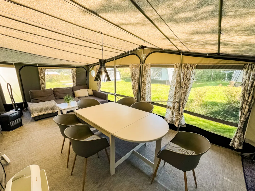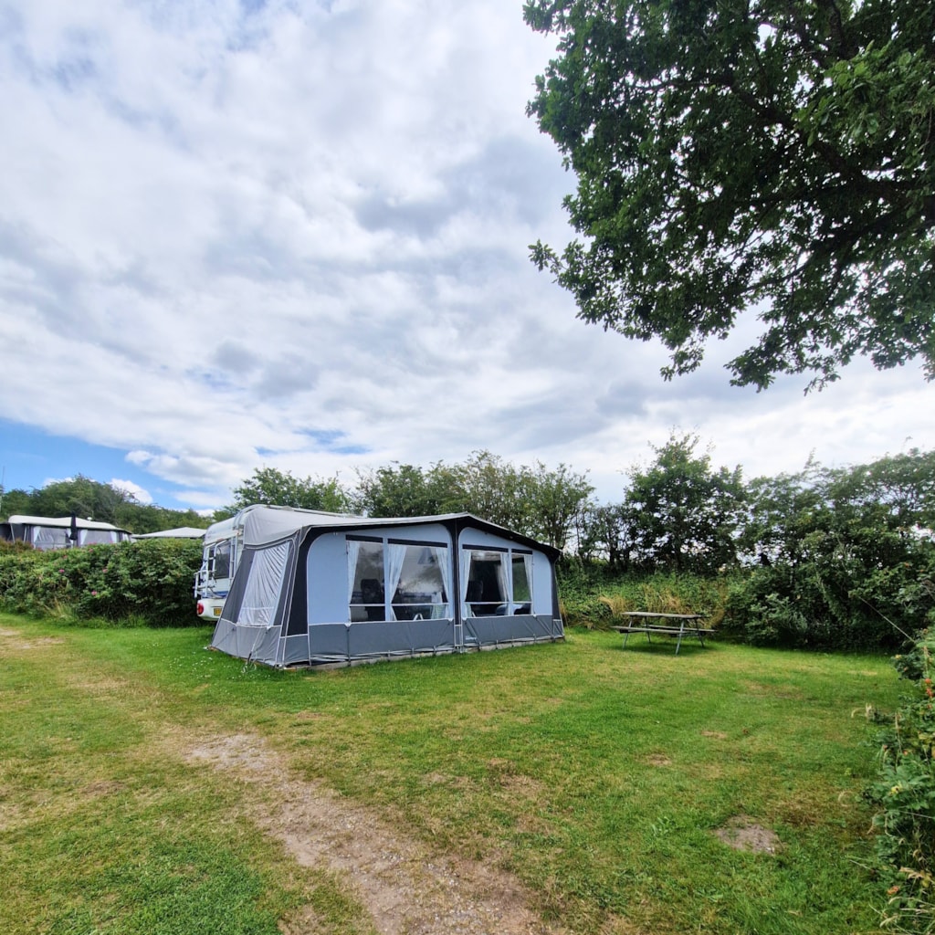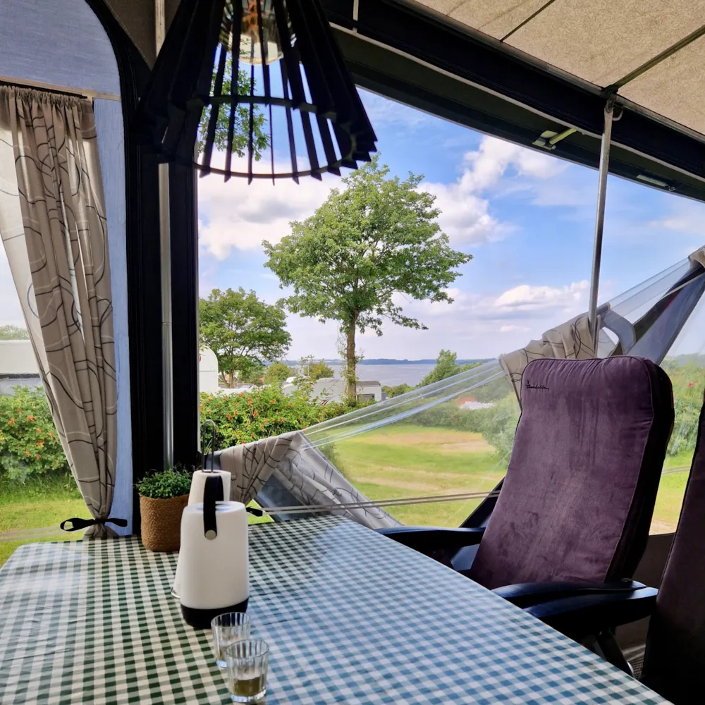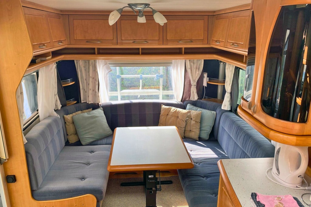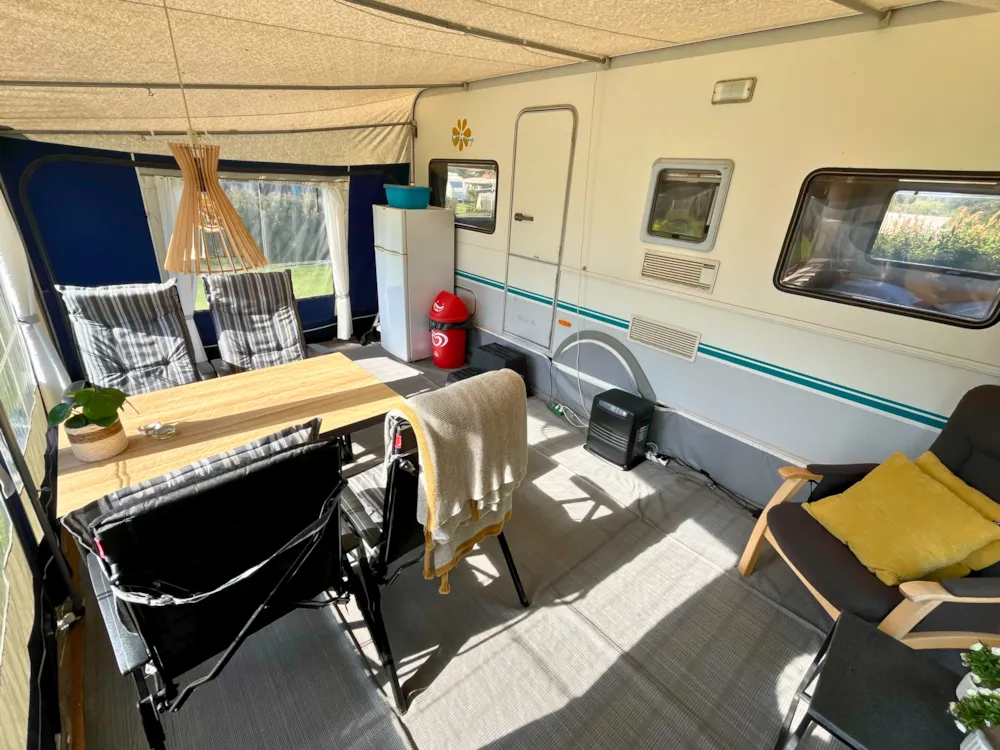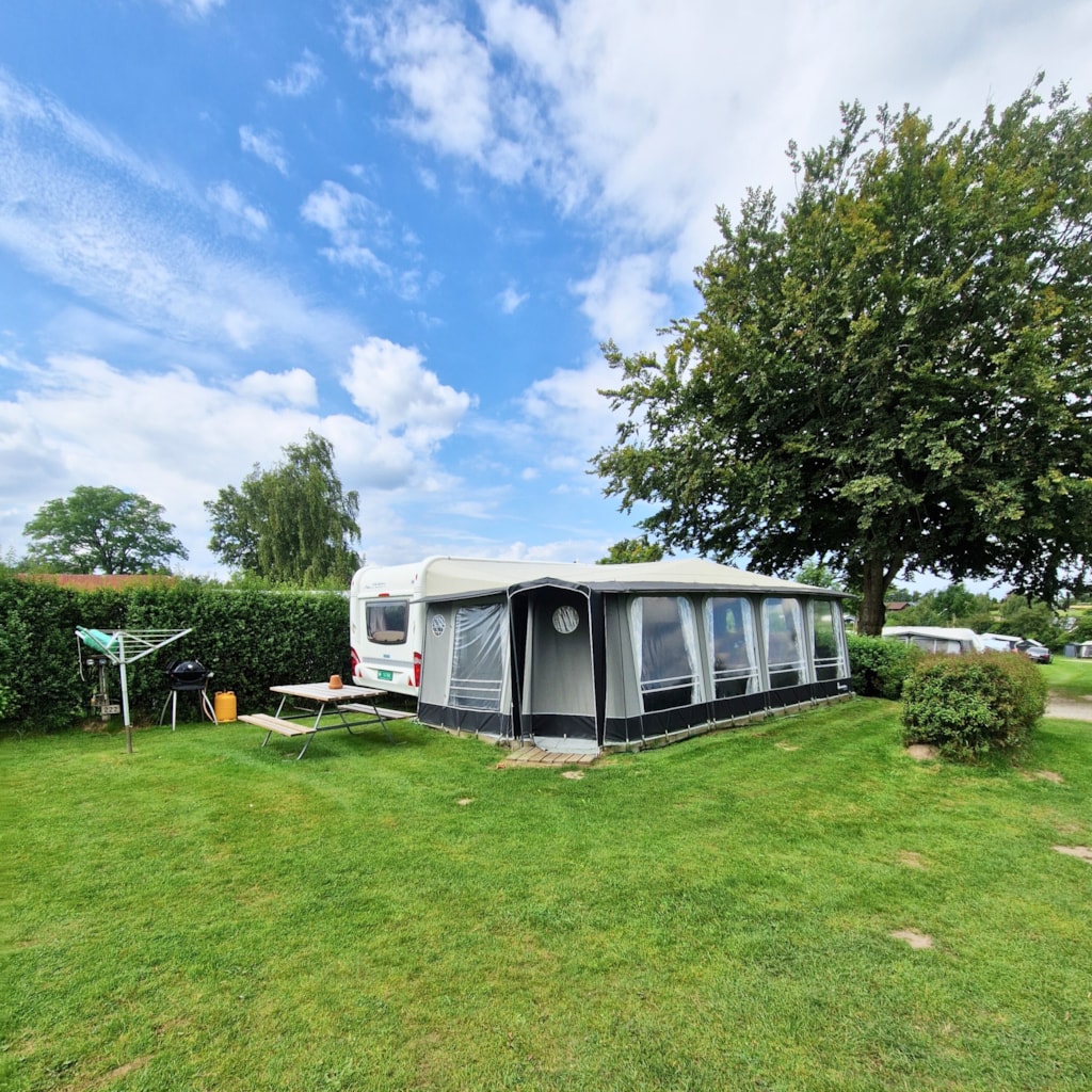 Wohnwagen und Vorzelt sind entsprechend der Atmosphäre des Campingplatzes gestaltet: gemütlich, ruhig, komfortabel und familienfreundlich.
