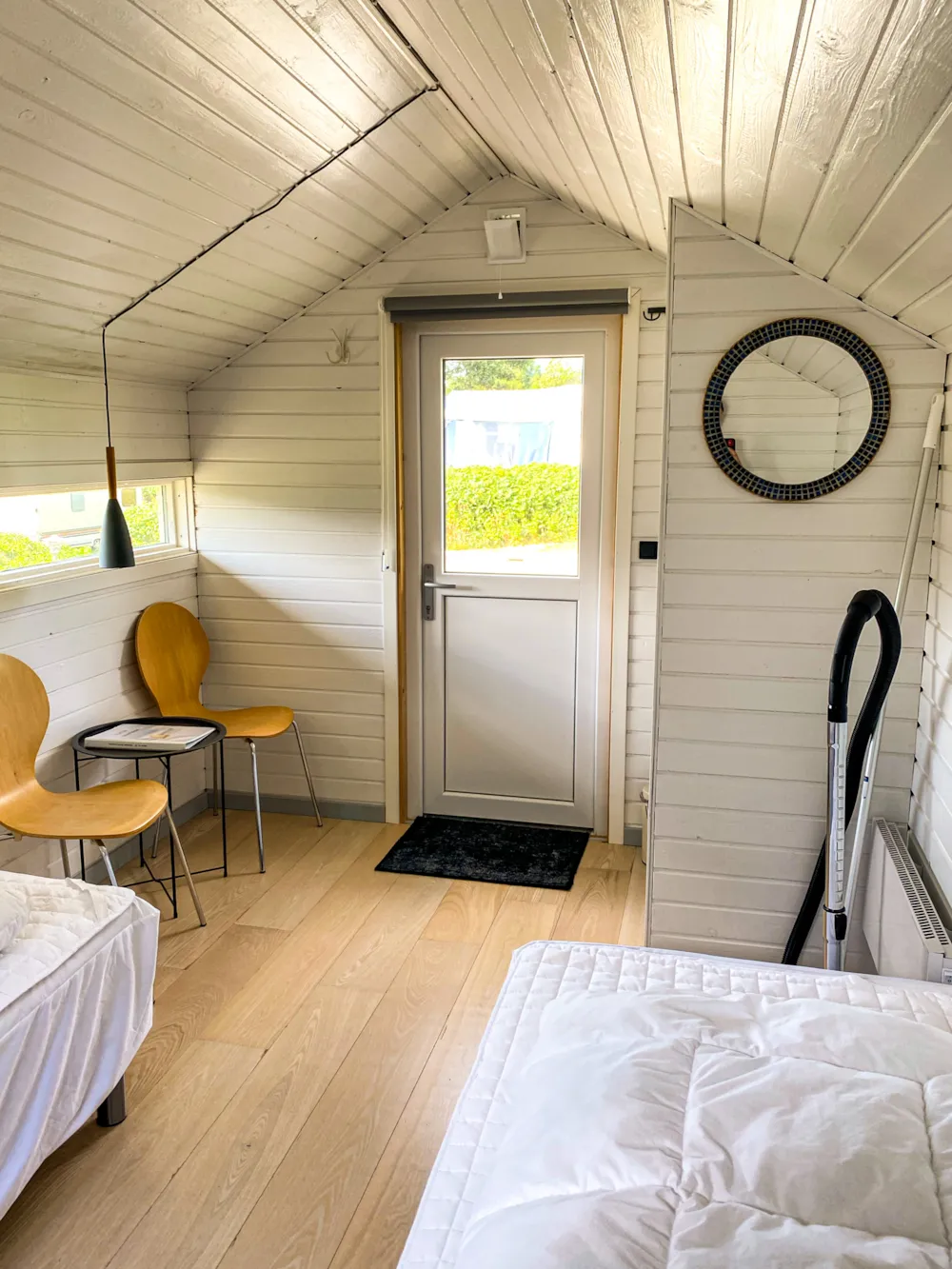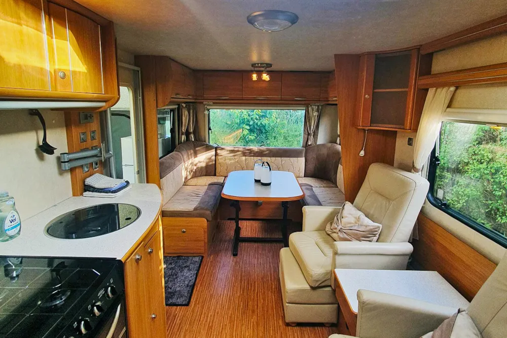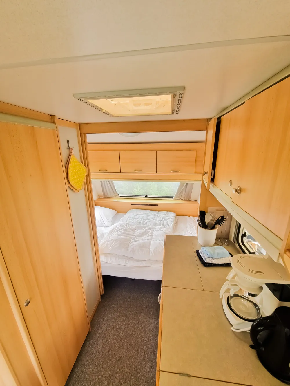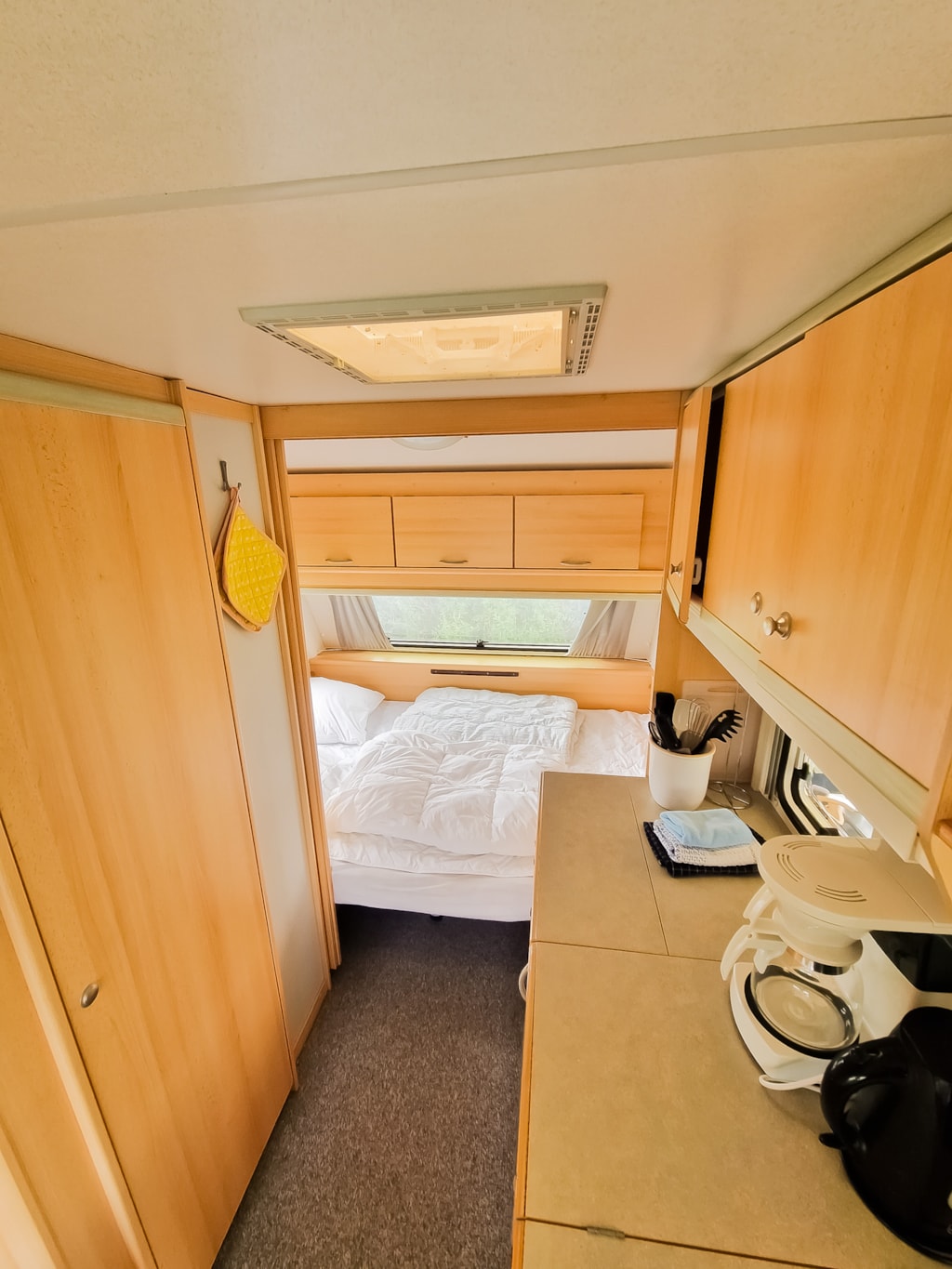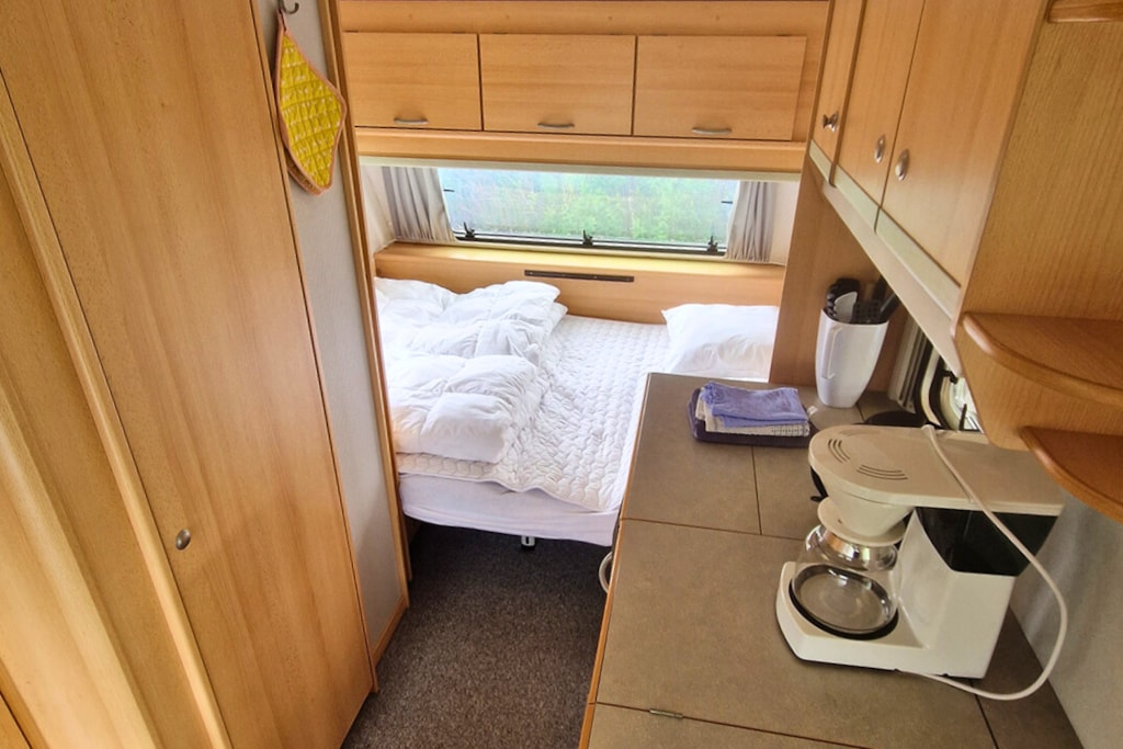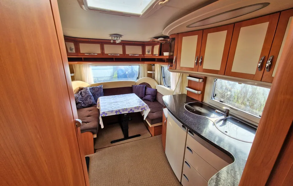 Wohnwagen und Vorzelt sind entsprechend der Atmosphäre des Campingplatzes gestaltet: gemütlich, ruhig, komfortabel und familienfreundlich.
