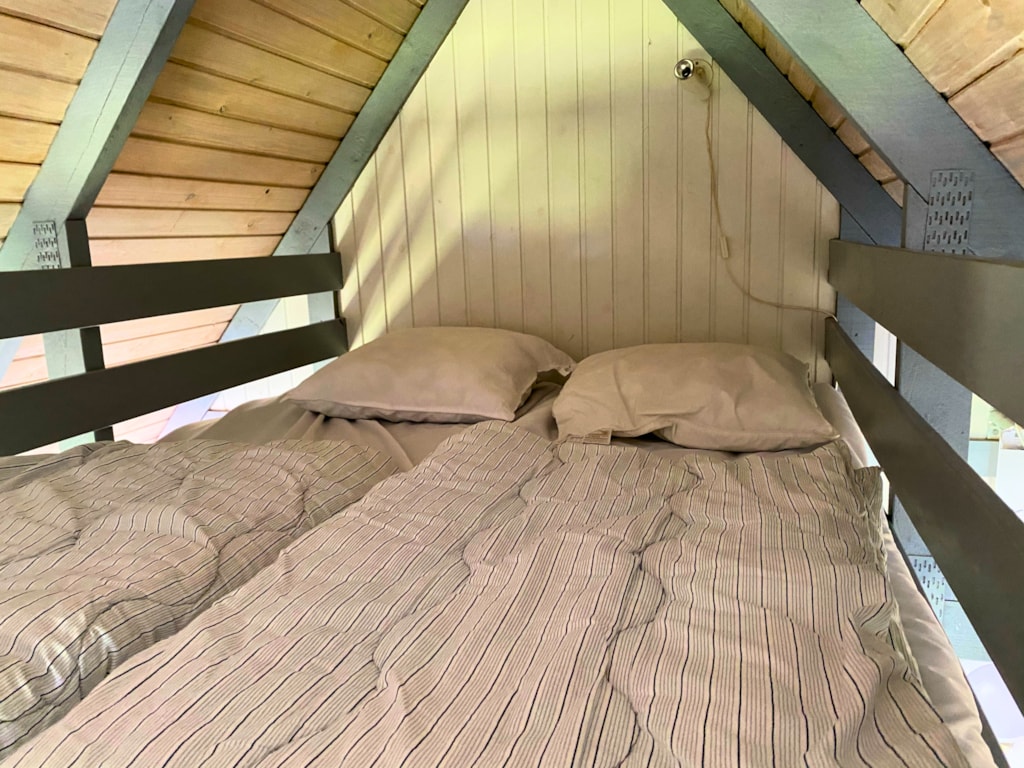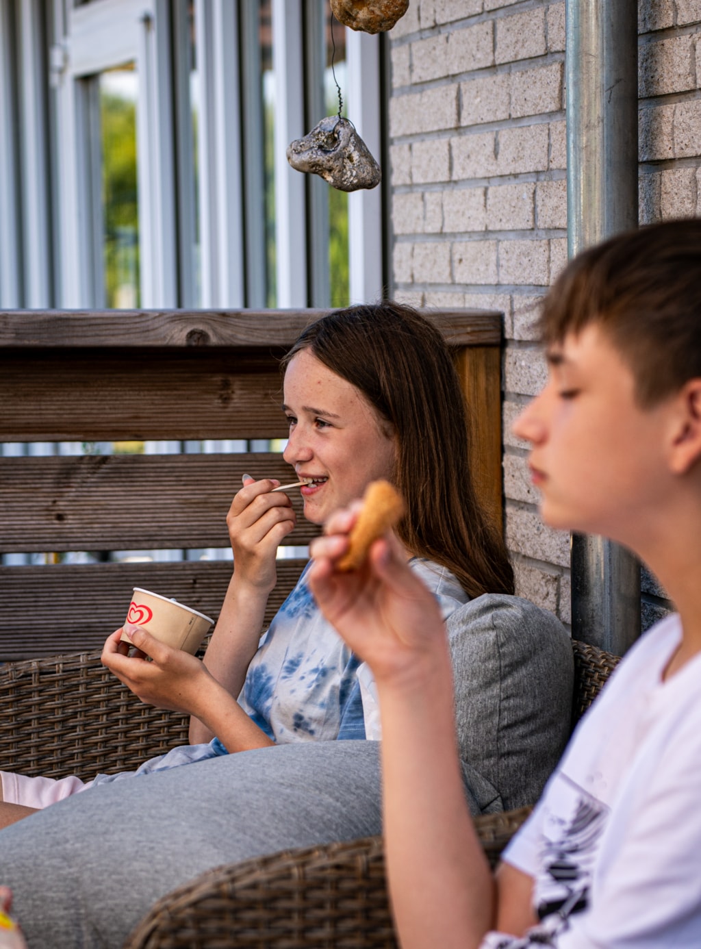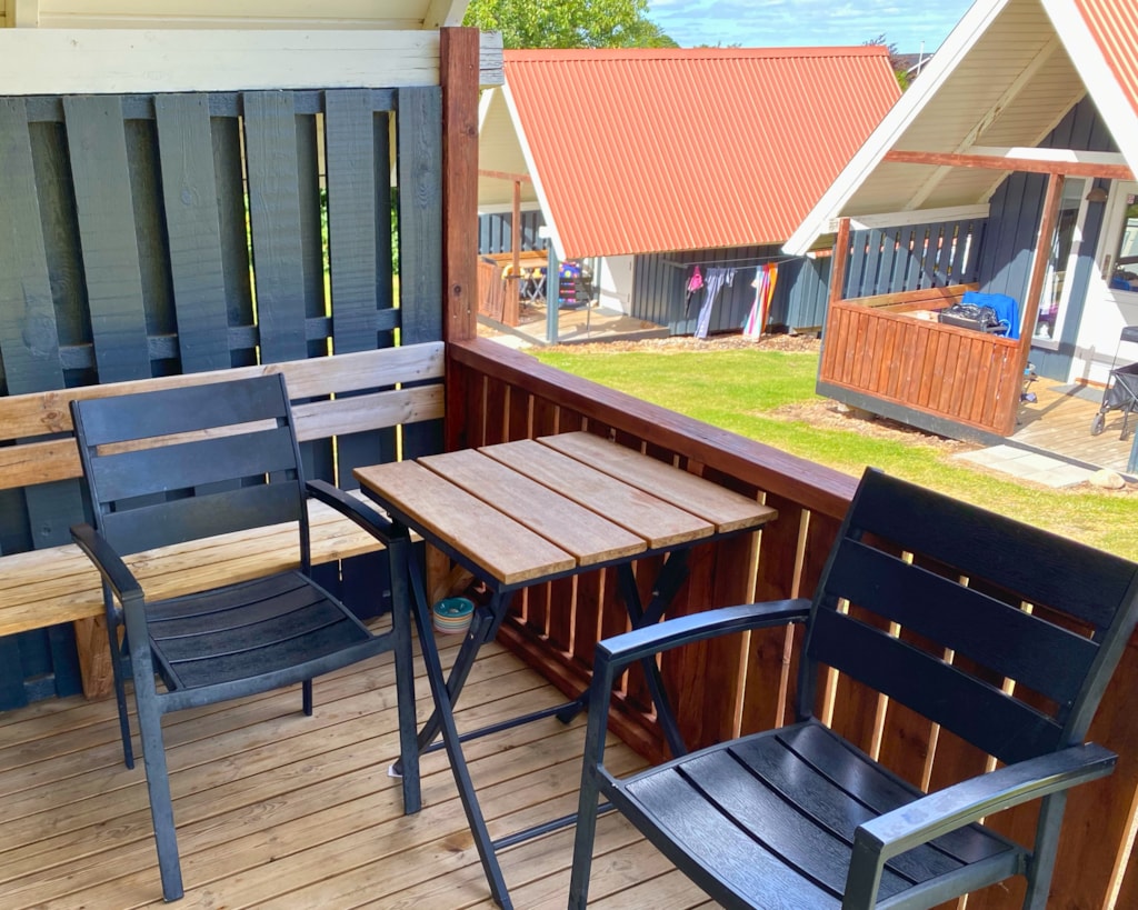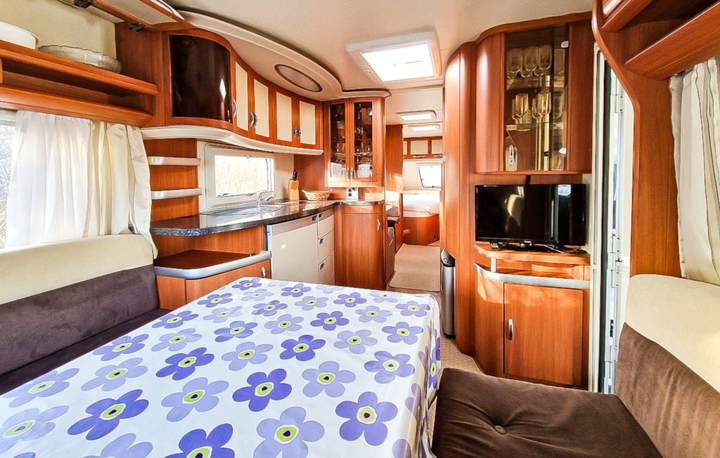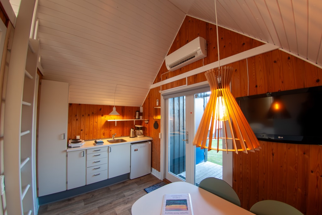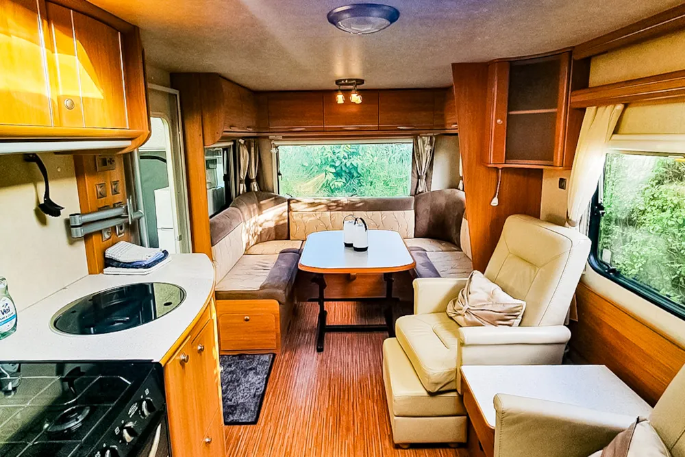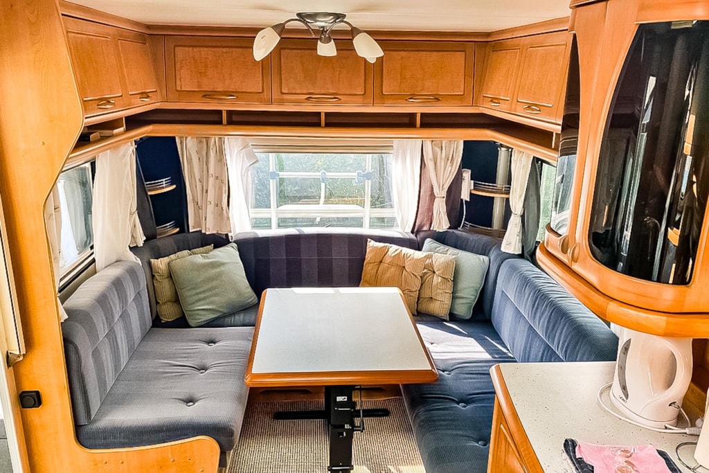 Wohnwagen und Vorzelt sind entsprechend der Atmosphäre des Campingplatzes gestaltet: gemütlich, ruhig, komfortabel und familienfreundlich.