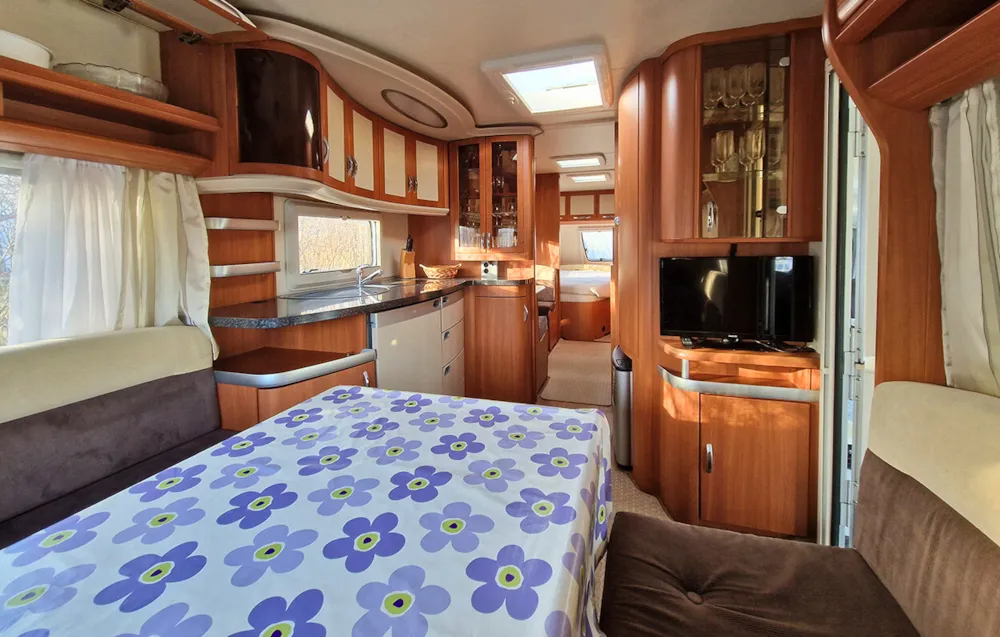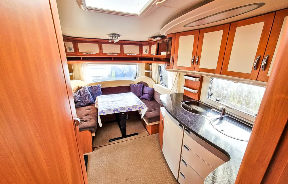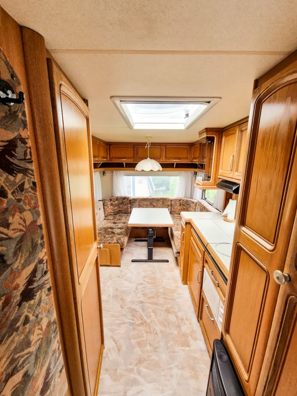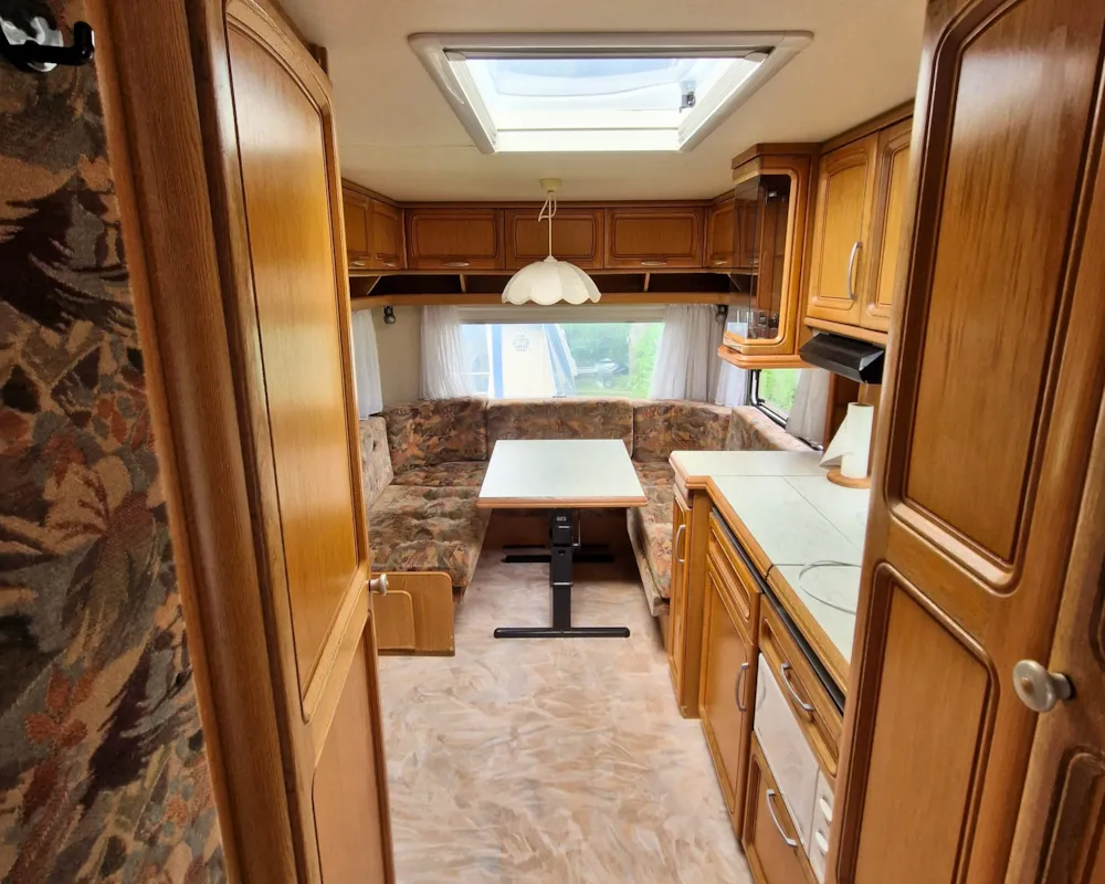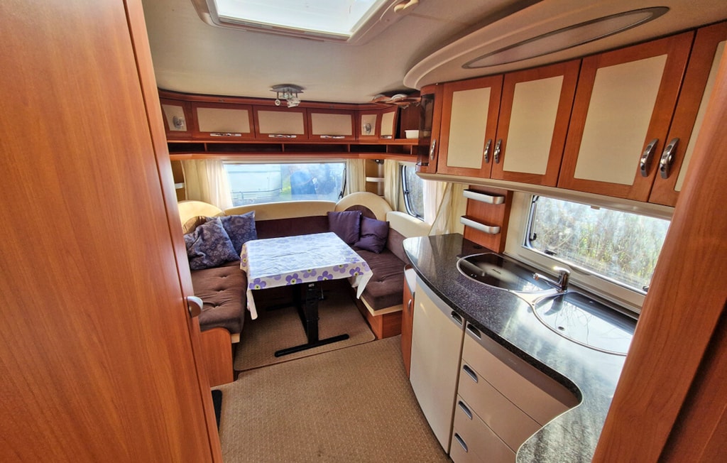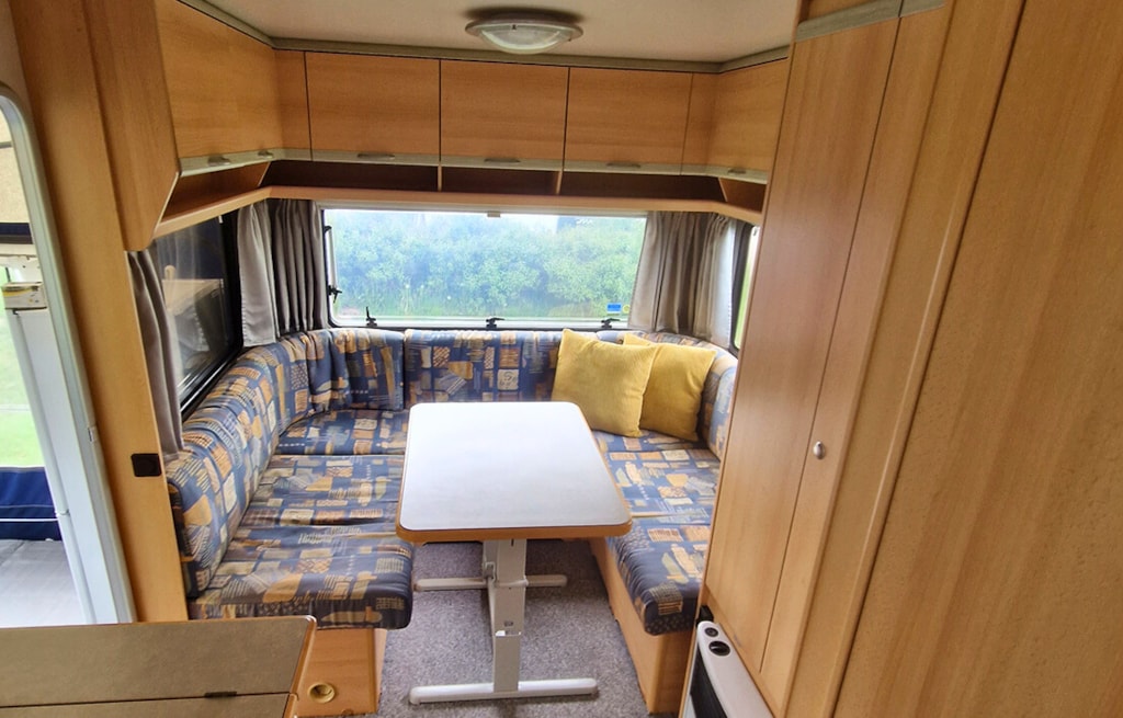 Bis zu 6 Personen können gerettet werden; Ein festes Doppelbett, eine Sitzgruppe, die in ein Doppelbett umgewandelt werden kann, und ein Schlafsofa mit Platz für 2 Personen im Vorzelt.