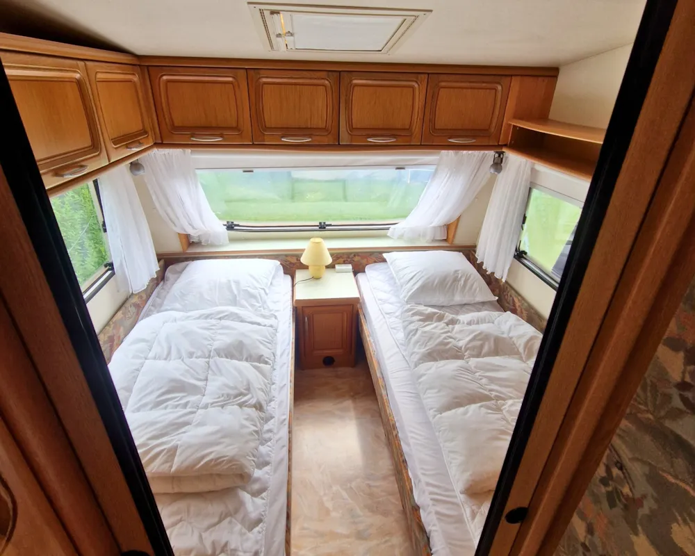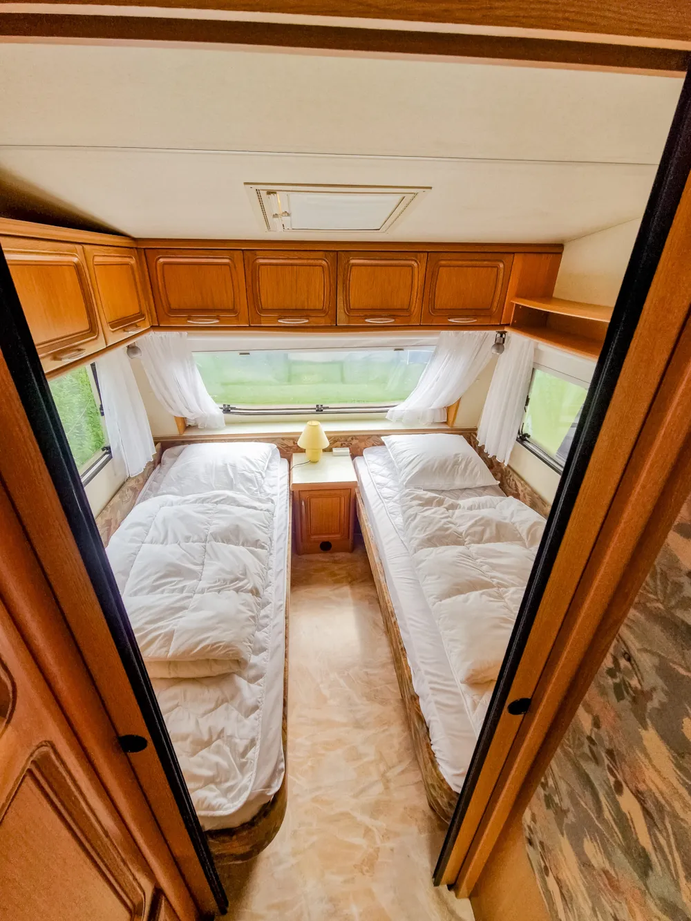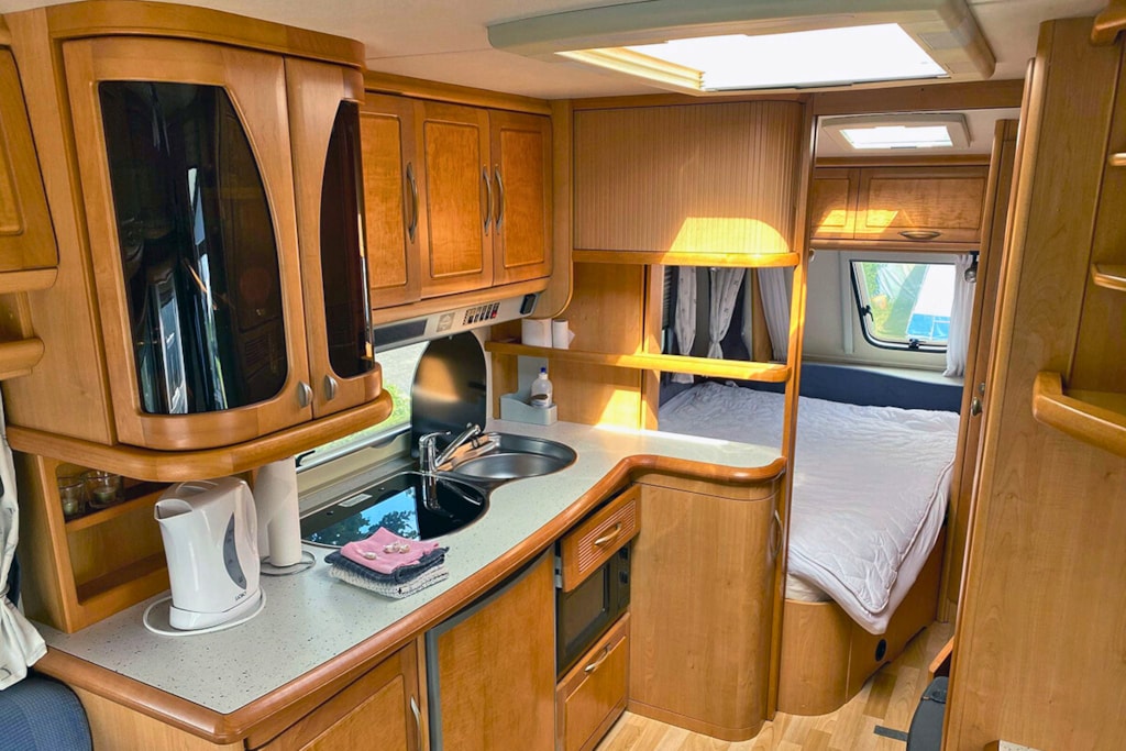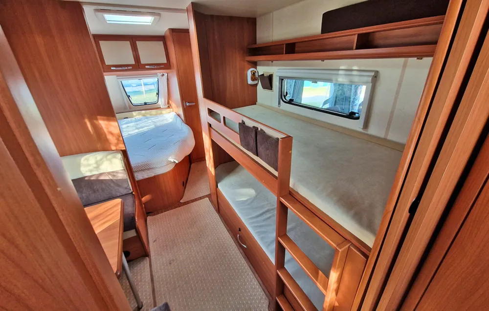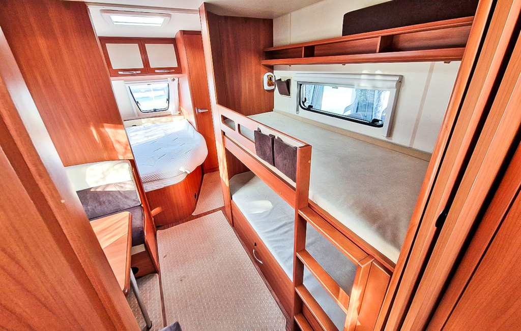 Bis zu 6 Personen können gerettet werden; Ein festes Doppelbett, eine Sitzgruppe, die in ein Doppelbett umgewandelt werden kann, und ein Schlafsofa mit Platz für 2 Personen im Vorzelt.