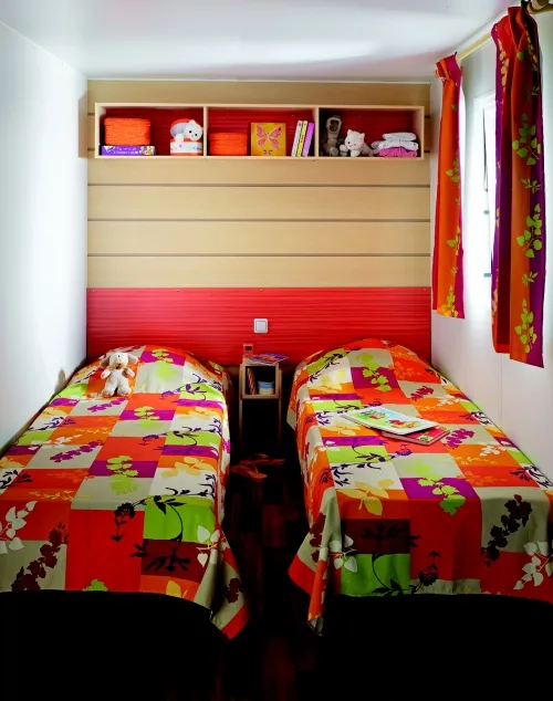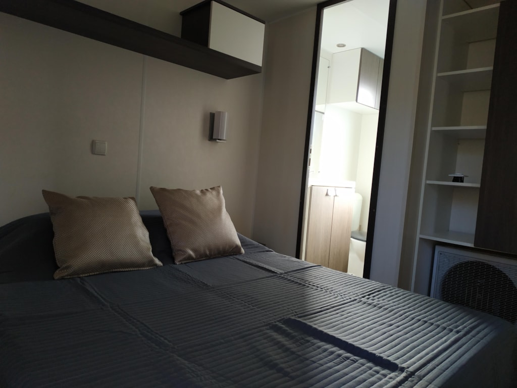 Chalet 4 mit 2 Schlafzimmern und überdachter Terrasse für 2 Erwachsene und 2 Kinder Hund sozial und geimpft an der Leine akzeptiert. Kategorie 1 und 2 verboten.