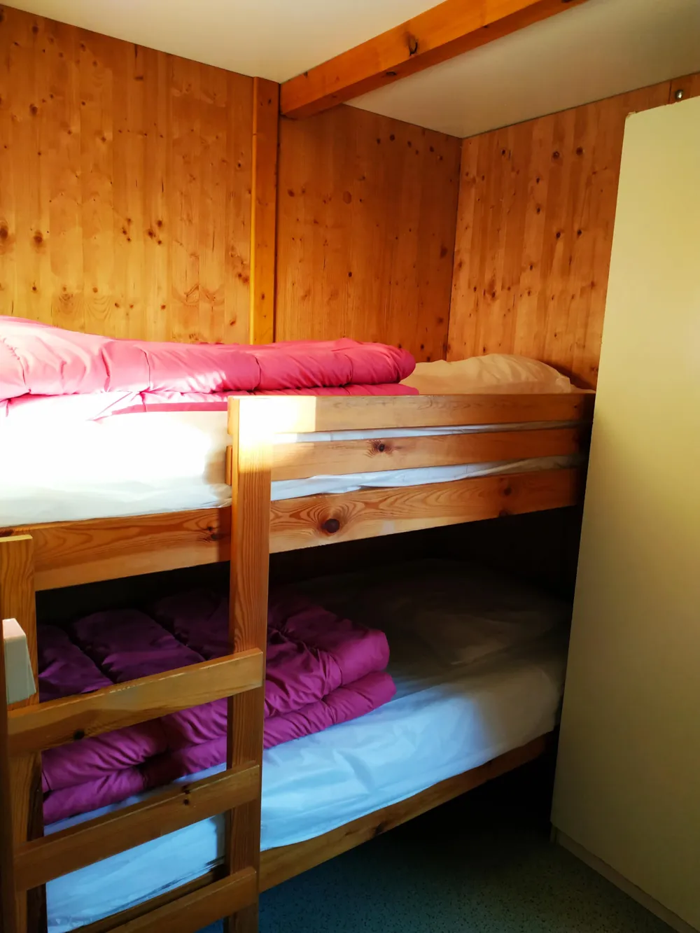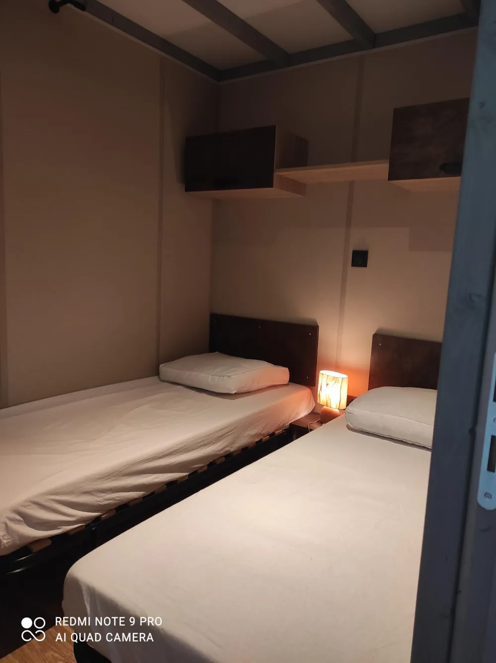 Chalet 5 24 m2 + 10 m2 Terrasse bestehend aus: 1 Schlafzimmer mit 1 Bett 140,1 Schlafzimmer mit 1 Etagenbett 80 und 2 Einzelbetten 80. Kochnische mit 1 Kühlschranktisch, 1 Platte 2 Gas, 1 Spüle, Mikrowelle und Stauraum. Bad mit 1 Dusche und 1 Waschbecken wc vom bad getrennt. Warmwasser von 80 Litern durch elektrische Akkumulation. Esszimmer mit 1 Tisch, 1 Bank und 3 Stühlen. Überdachte Terrasse mit 1 Tisch und 5 Harzstühlen. Komplettes Inventar für die Küche. 5 Kissen / 4 Decken / 4 Bettdecken zum Schlafen Hund sozial und geimpft an der Leine akzeptiert. Kategorie 1 und 2 verboten.
