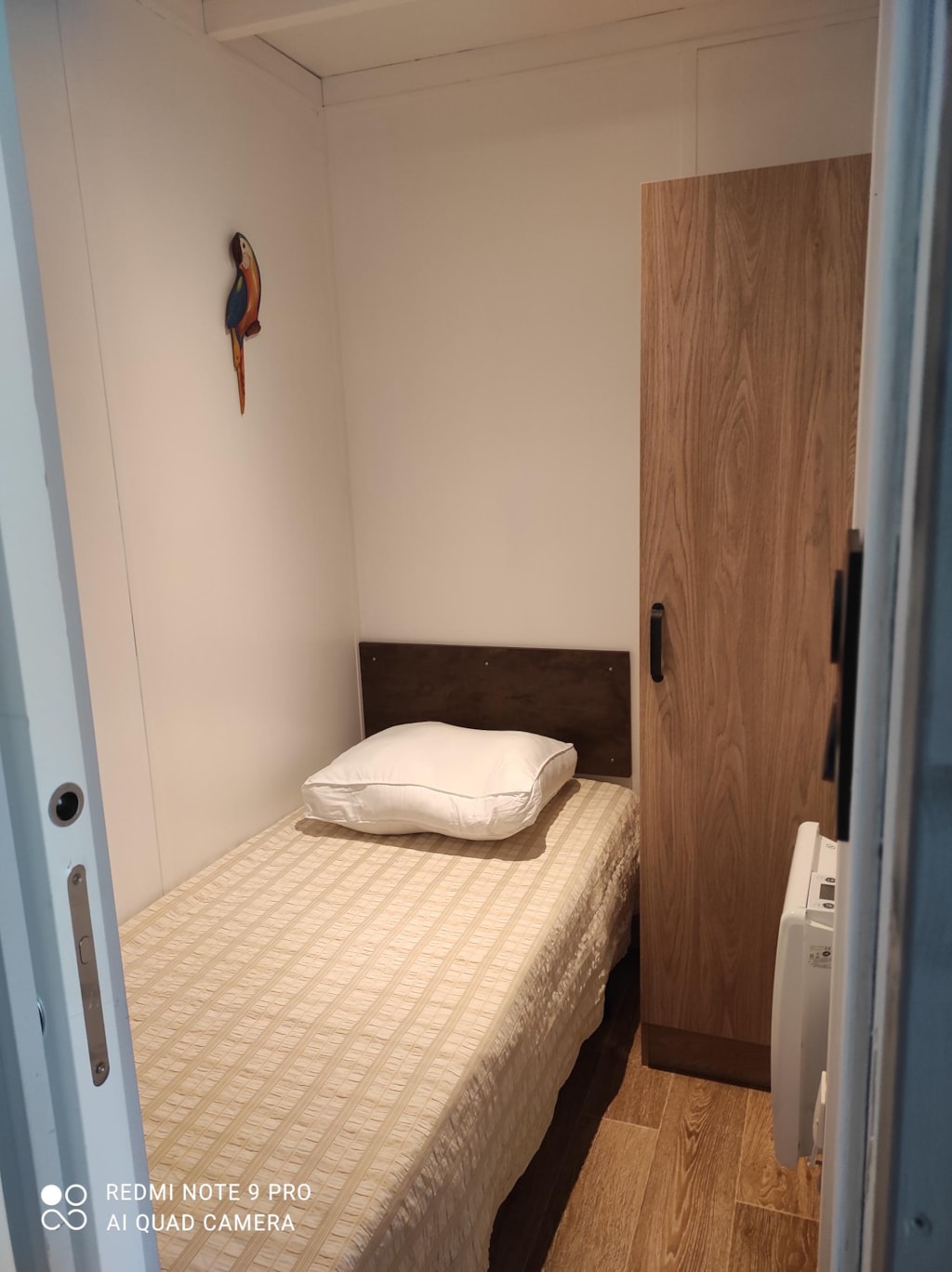 Ideal für eine 6-köpfige Familie 1 Zimmer mit 1 Bett von 140 1 zweites Schlafzimmer mit 1 Bett von 120 und 2 übereinandergelegten Betten von 90 und eine große überdachte Terrasse Hund sozial und geimpft an der Leine akzeptiert. Kategorie 1 und 2 verboten.