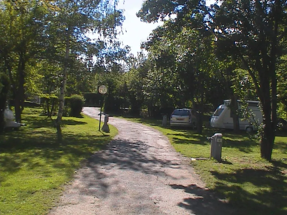 emplacement pour 2 personnes, 100 m2, plat spacieux, ombragé électricité 10 ampères, branchement d' eau