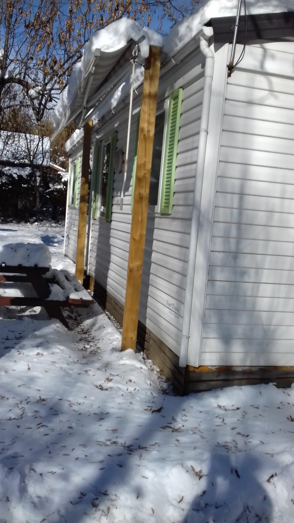 Mobile home pour 6 personnes : 3 chambres dont : 1 avec lit 140 + 2 avec lits jumeaux dans chacune, un clic-clac dans le coin salon, TV, plaque gaz 4 feux, micro-ondes, réfrigérateur et congélateur, 1 micro-onde, 1 grille pain, 1 cafetière électrique, 1 mixer, 1 bouilloire électrique, 1 robot, 1 cocotte minute, 1 marmite, 5 casseroles, 2 poiles,3 couvercles,1 carafe à eau, 2 grand plats, 2 saladiers,1 essoreuse à salade, 1 passoire à pieds, 1 dessous de plat, 1 egoutoir, 2 plaches à decouper, 1 clef à sardine, 1 ouvre boite, 1 tire bouchon, 1 balais, 1 baleyette, 1 pelle à poussière, 1 lave pont,1 serpillère, 1 bassine 1 verre mesureur, 10 verres à eau, 7 bols, 7 tasses à café, 7 soutasses, 8 couteaux à steck, 9 fourchettes, 9 cuillères à soupe, 8 cuillères à café, 1 écumoire, 1 louche, 7 assiettes, creuses, 10 assiettes plates, 7 assiettes à dessert, terrasse aménagée store mécanique. étendoir à linge,1 table, banc et chaises