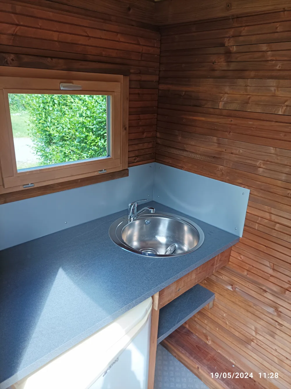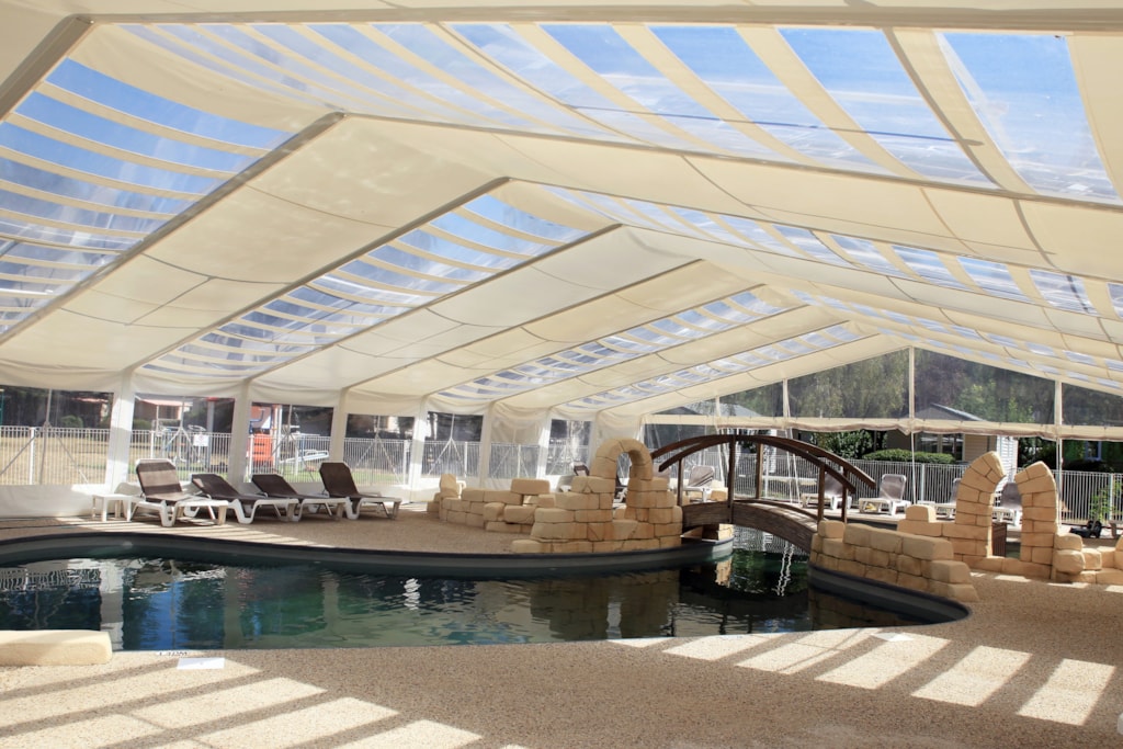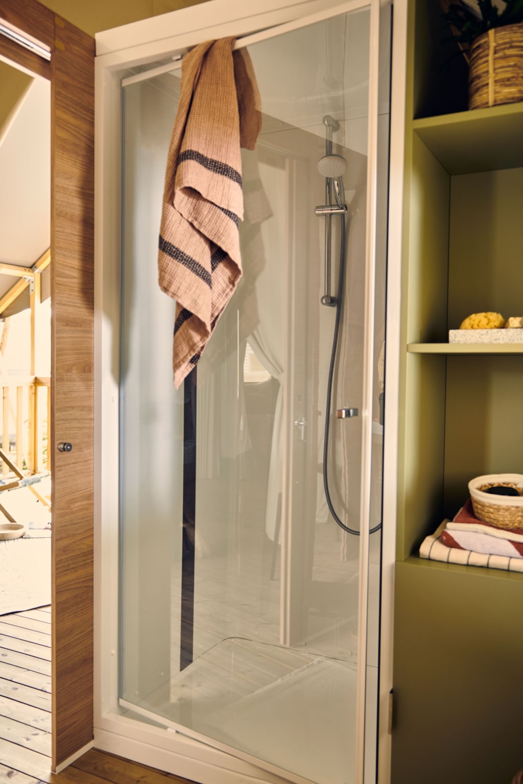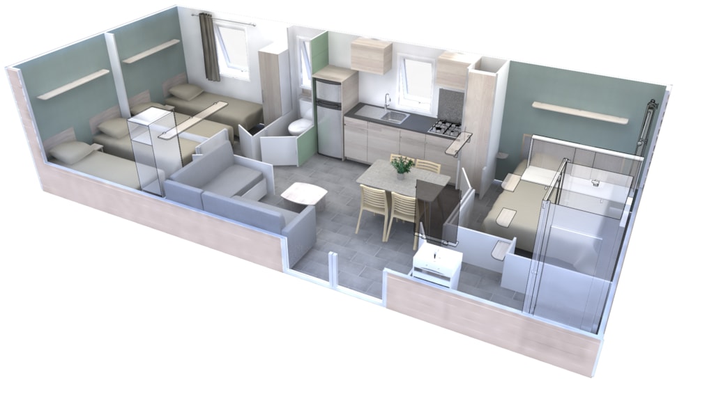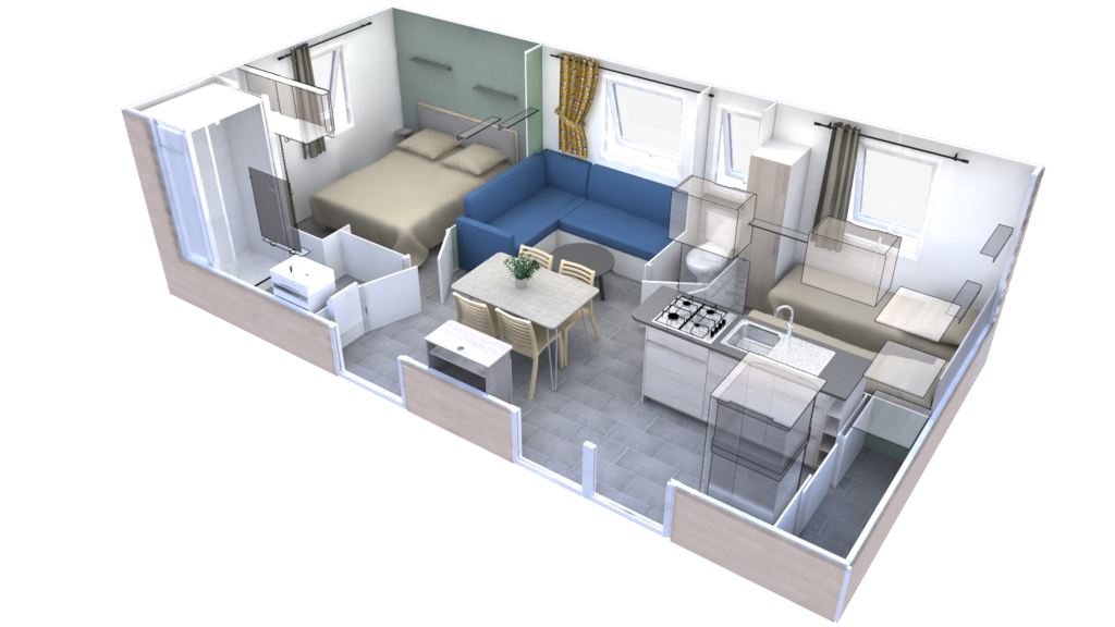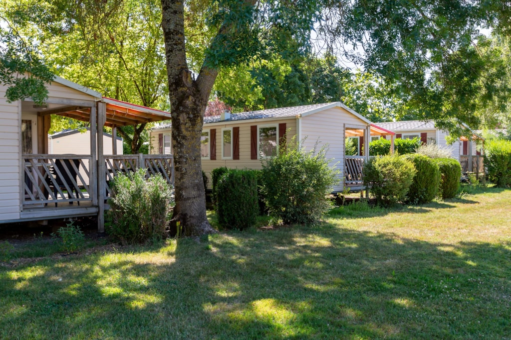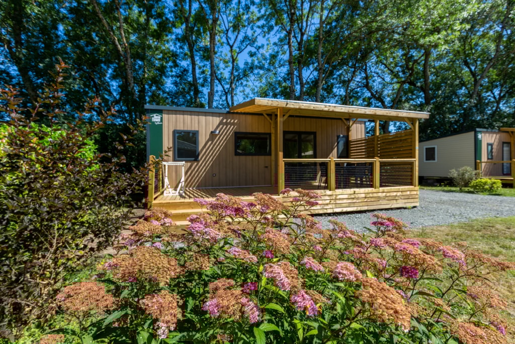 Ganzjährig nutzbares Mobilheim mit integrierter Terrasse und privatem Garten