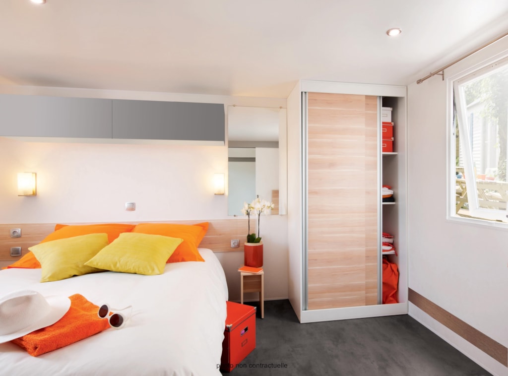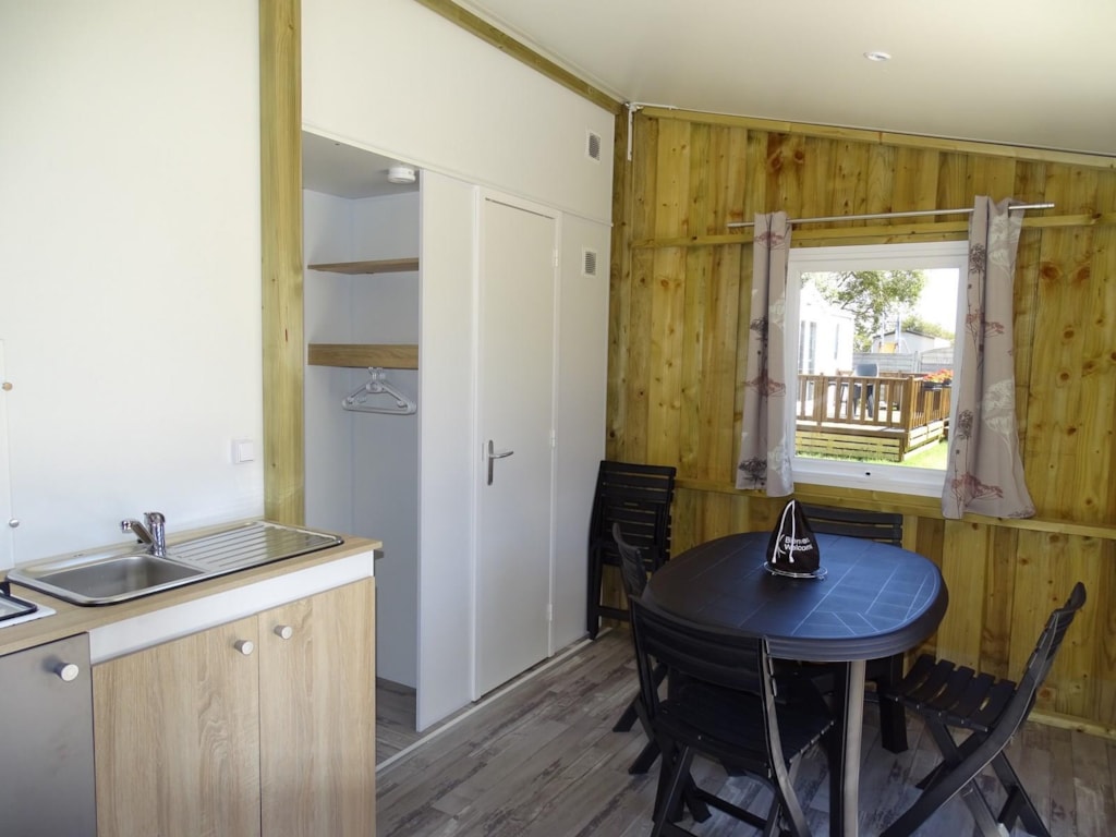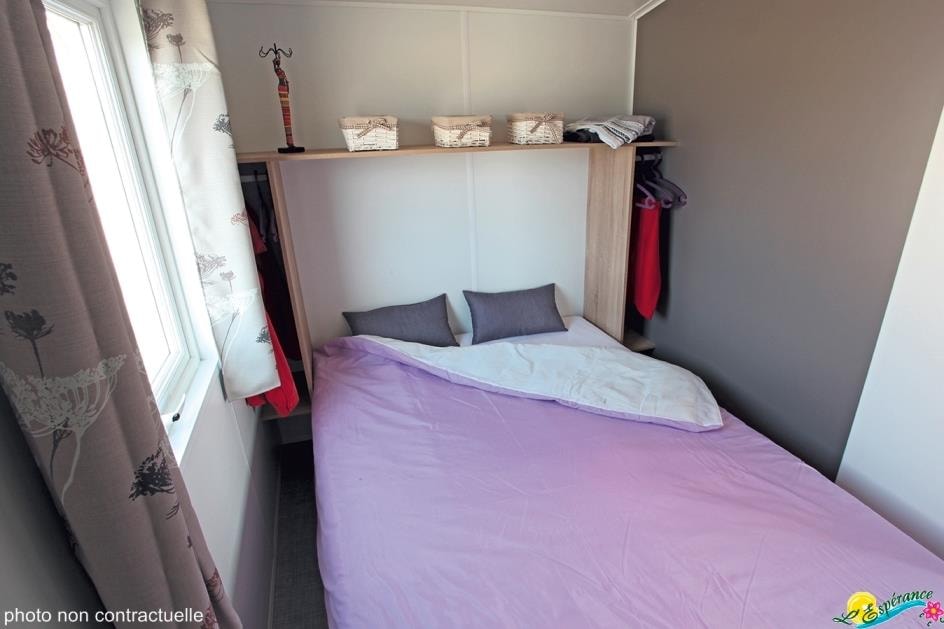 Le Tithome , un petit mobil home à l’esprit cabane ! Avec ses 20m² pour 4/5 personnes, il réjouit les enfants par son coté aventurier et séduit les parents par son confort. Ils sont installés sur des parcelles d’environ 90 m², à proximité du bloc sanitaire, avec une terrasse caillebotis et un salon de jardin avec parasol. Connexion wifi possible avec couverture totale du camping (payant) Equipement intérieur : - Espace séjour-cuisine avec table et chaise, téléviseur, plaque de cuisson, évier avec eau chaude, réfrigérateur top, cafetière électrique, micro-onde. - Une chambre (lit 2 places 140x190cm) + une chambre avec lits gigognes (2 lits de 70x190cm) + un lit superposé (70x190cm) - W.C. (Le Tithome n’est pas équipé de salle de bain), convecteurs électriques dans chaque pièce. Max 5 personnes par Tithome (enfants compris). Les tentes supplémentaires de sont pas acceptées sur l’emplacement. Fournis : couvertures et oreillers – matériel de cuisine et d’entretien. Non fourni : draps/taies, serviettes de toilette, torchons. Prêt de chaise et de lit bébé selon disponibilités. Possibilité de forfait nettoyage en fin de séjour Maximum 1 animal Chiens de 1ère et 2ème catégorie non admis. Hébergement non fumeur. Caution de 500€ demandée à l’arrivée. Restituée si location propre et en parfait état à la fin du séjour. Le Tithome n’est pas accessible aux personnes à mobilité réduite. HEURE D’ARRIVEE : 16h – HEURE DE DEPART : entre 8h30 et 10h. RETROUVEZ TOUTES LES CONDITIONS SUR LE SITE DANS LES PAGES HEBERGEMENTS ET TARIFS LOCATIONS !