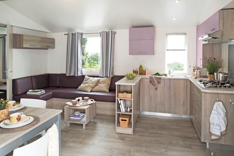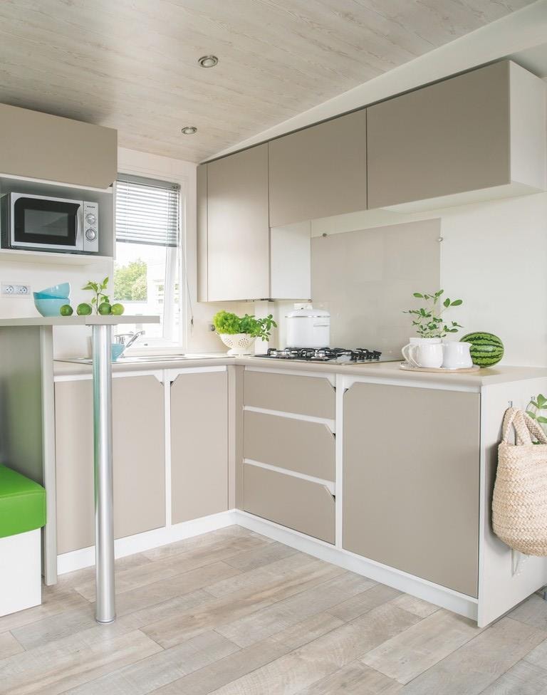 Mobilhome propre avec un mobilier simple et propre ainsi qu un matériel de cuisine complet. Tout est bien pensé.