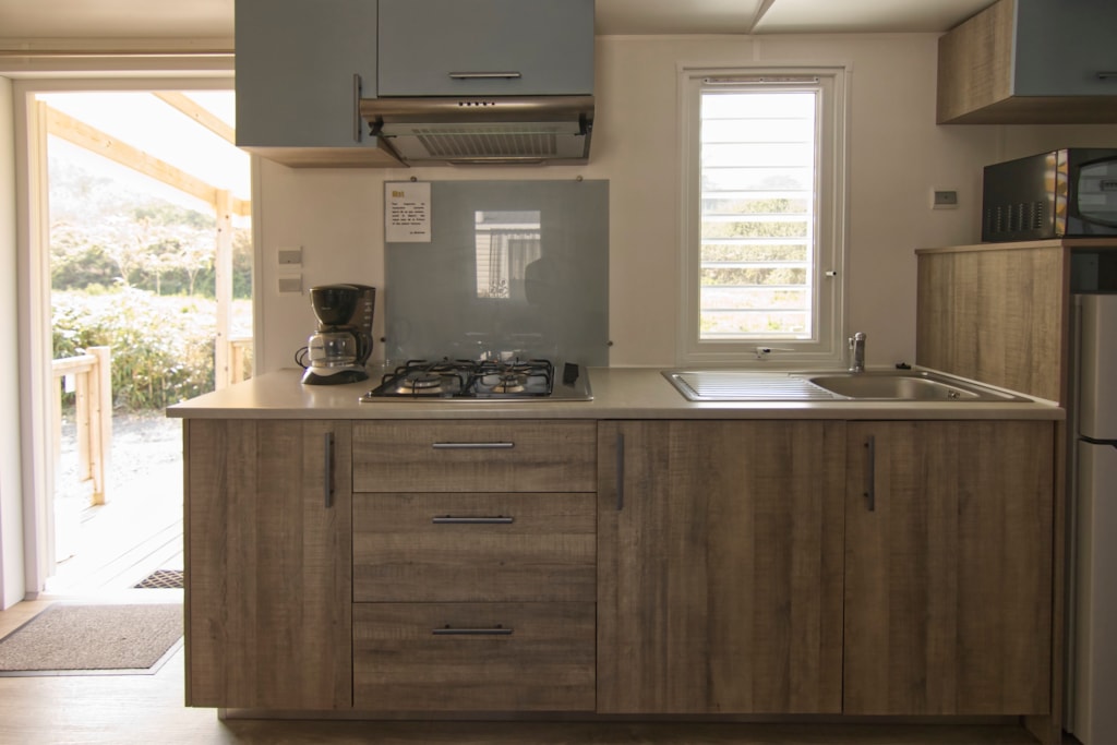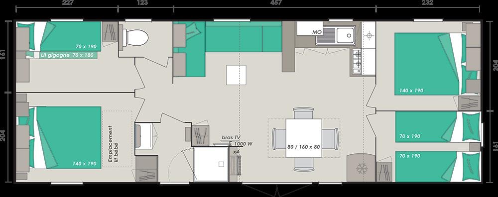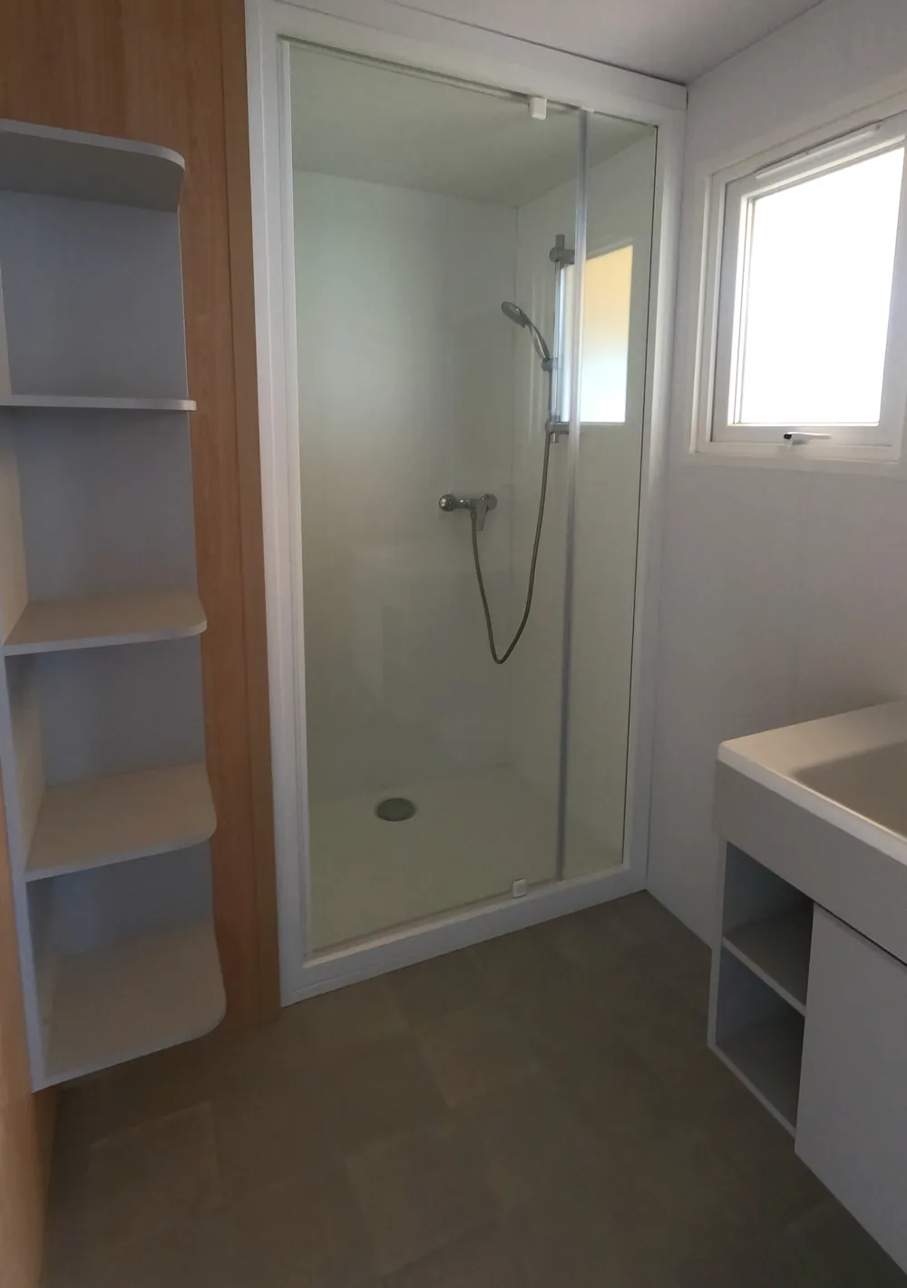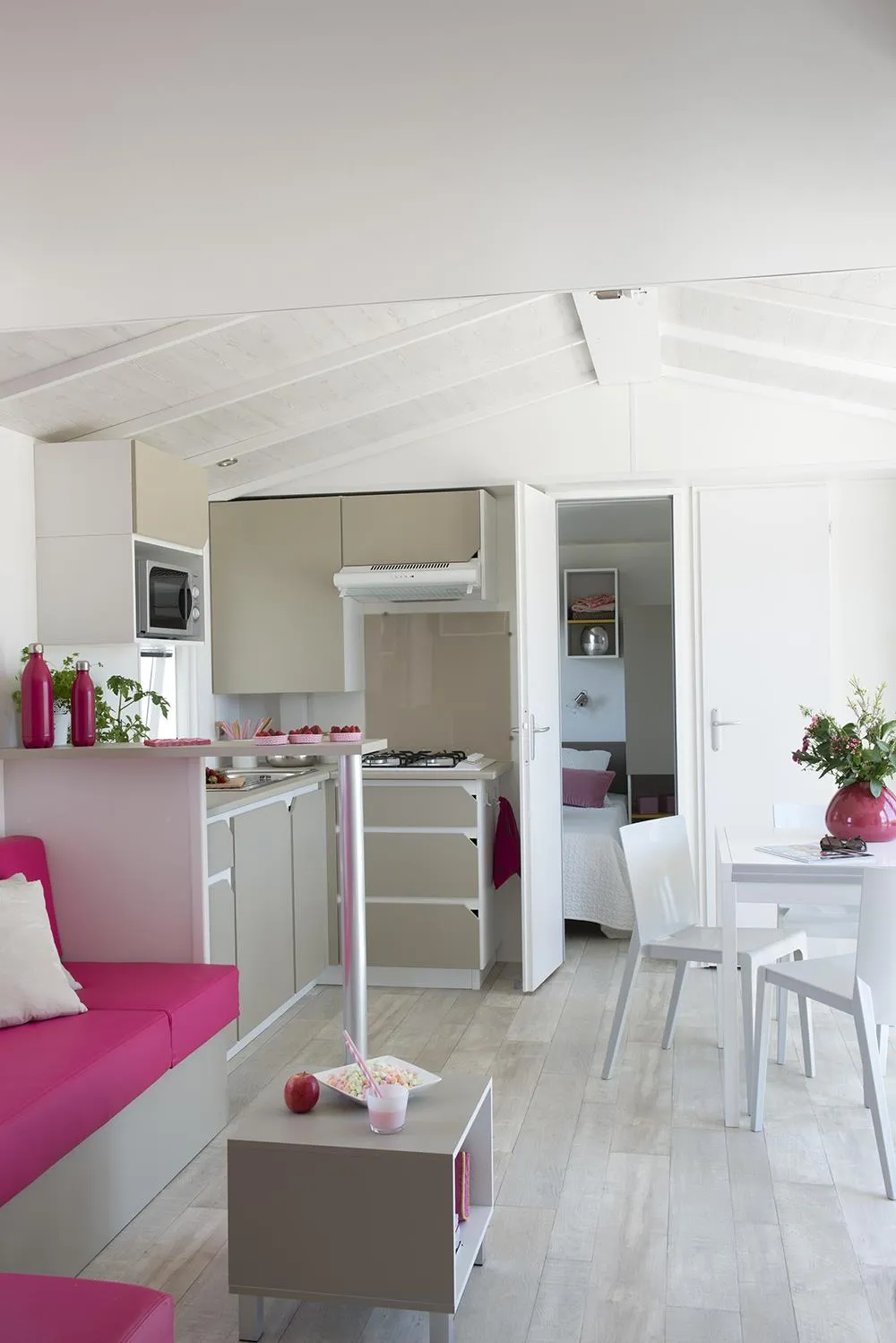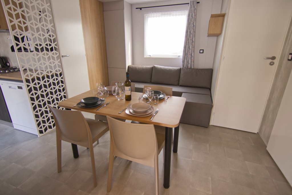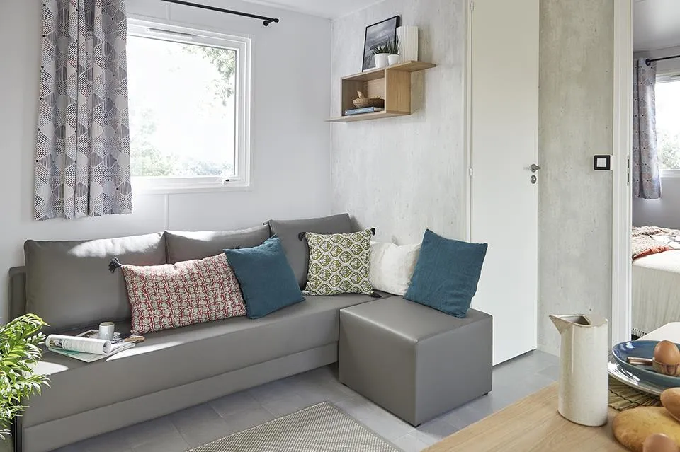 Mobil-home, 2 chambres, 30 m2, conçu pour rendre vos vacances plus confortables. Terrasse couverte, salon de jardin, une grande salle de bain, WC separé. Cuisine tout equipée, micro-onde, cafetière et lave-vaisselle. Télévision. Chauffage dans toutes les chambres. WiFi Gratuit, SPA PRIVATIFS COUVERTE !