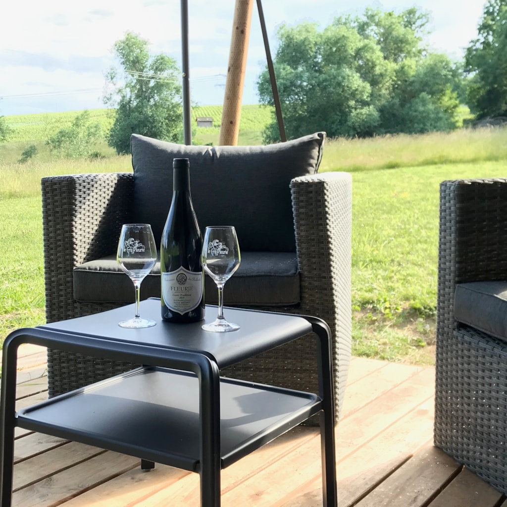 Sie verfügen über zwei Schlafzimmer: eines mit einem Doppelbett, das andere mit drei Einzelbetten (davon zwei Etagenbetten). Im Zelt finden Sie eine voll ausgestattete Küchenzeile und einen Wohnzimmertisch. Die große Terrasse mit einer herrlichen Aussicht wird Sie begeistern! 2 Liegestühle stehen Ihnen für einen erholsamen Urlaub im Herzen des Beaujolais zur Verfügung!
