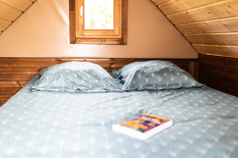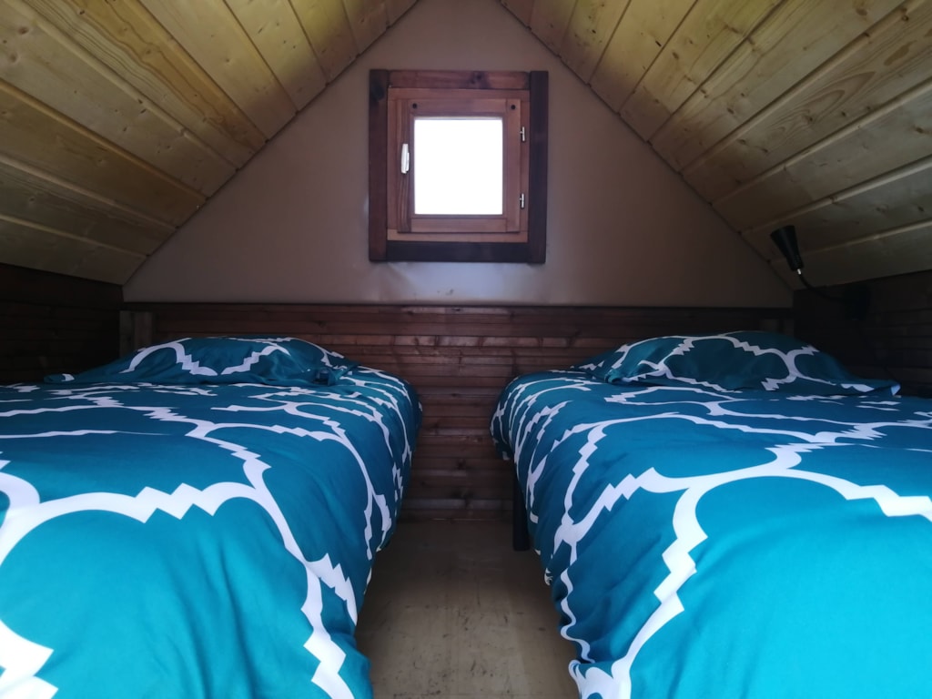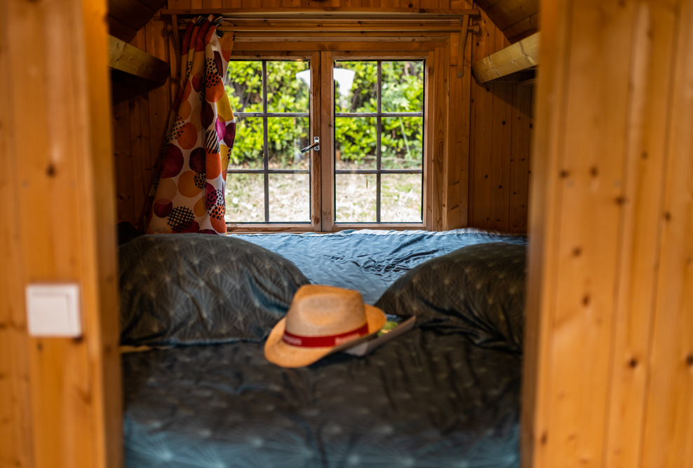 Entdecken Sie unsere Familienhütte mit Blick auf die Weinberge! Es verfügt über 2 Schlafzimmer, eines mit einem Doppelbett und das andere mit zwei Einzelbetten.