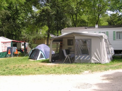 Rasenplatz, Fläche zwischen 180m2 und 240m2, mit elektrischer und individuellen sanitären Einrichtungen (WC-Dusche-Waschbecken-Kühlschrank)