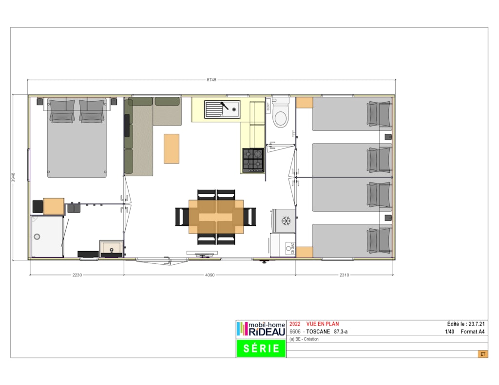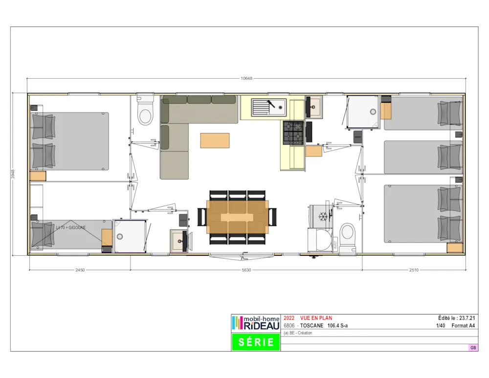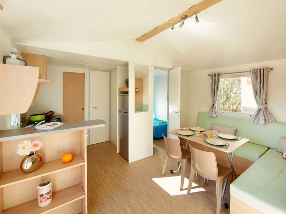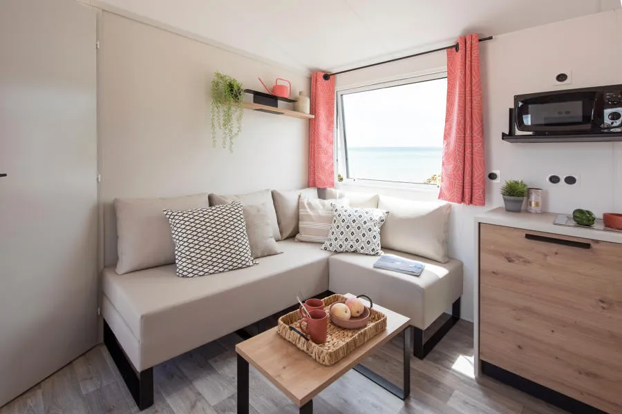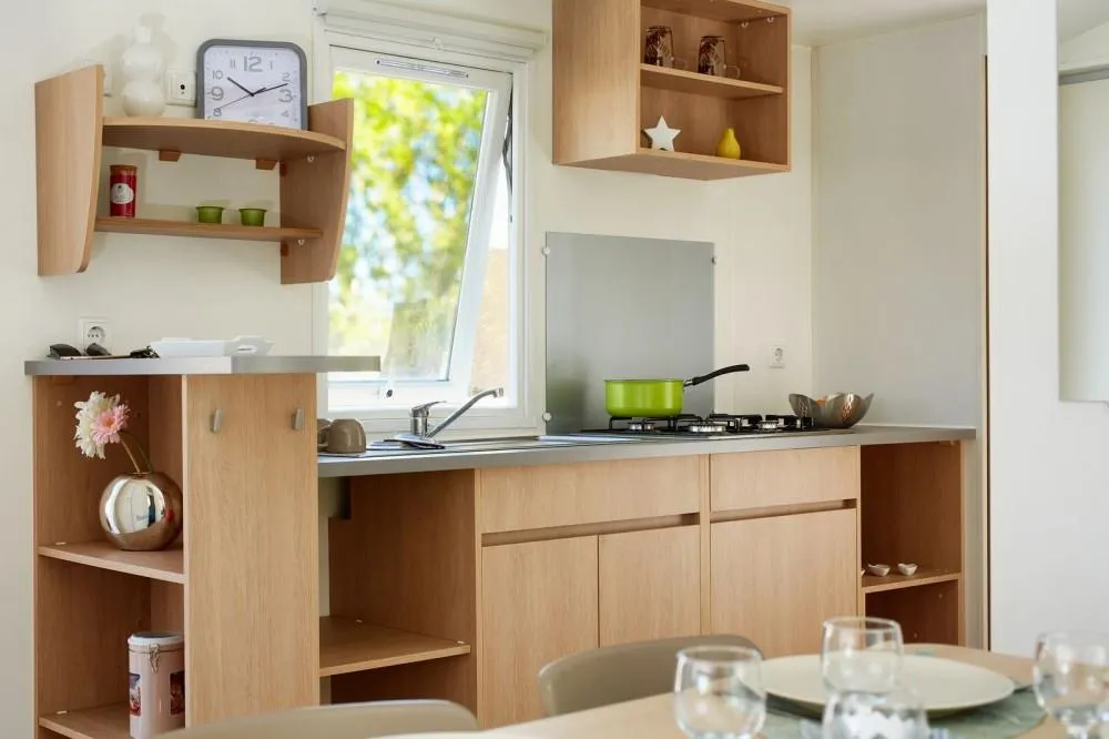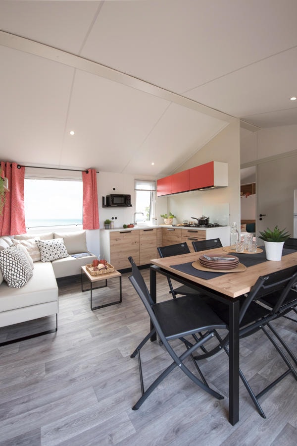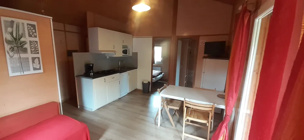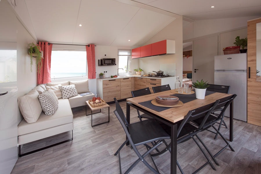 Ausgestattet für 4 bis 5 Personen. Die Mobilheime sind gut isoliert und beheizt, was einen sehr angenehmen Aufenthalt garantiert. Mobilheime stehen vom 1. April bis Ende November zur Verfügung.