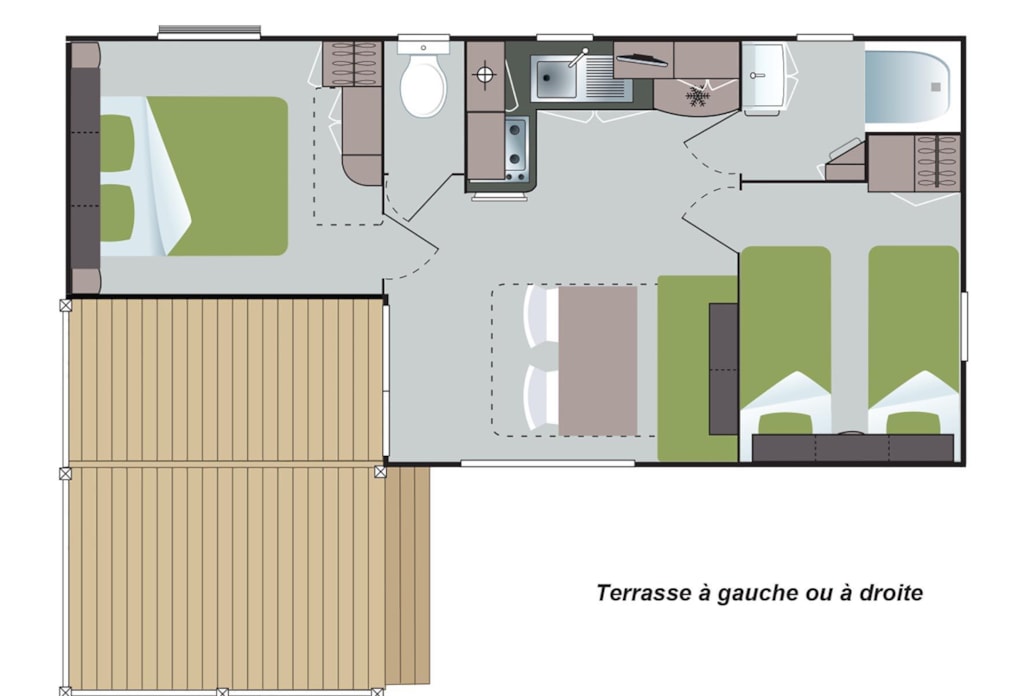 Mobil home 2 chambres tout confort avec terrasse intégrée