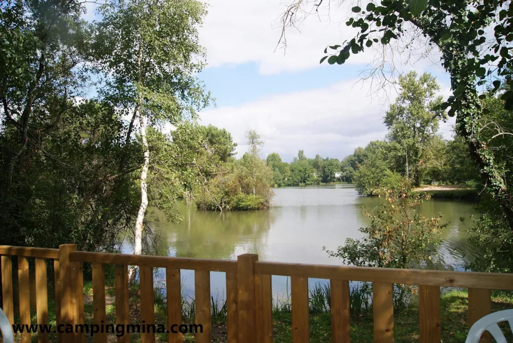 Chalet PLUS COMFORT mit integrierter Terrasse von 22 m3 Blick auf die Teiche, für 4 Personen, komplett ausgestattet mit Fernseher