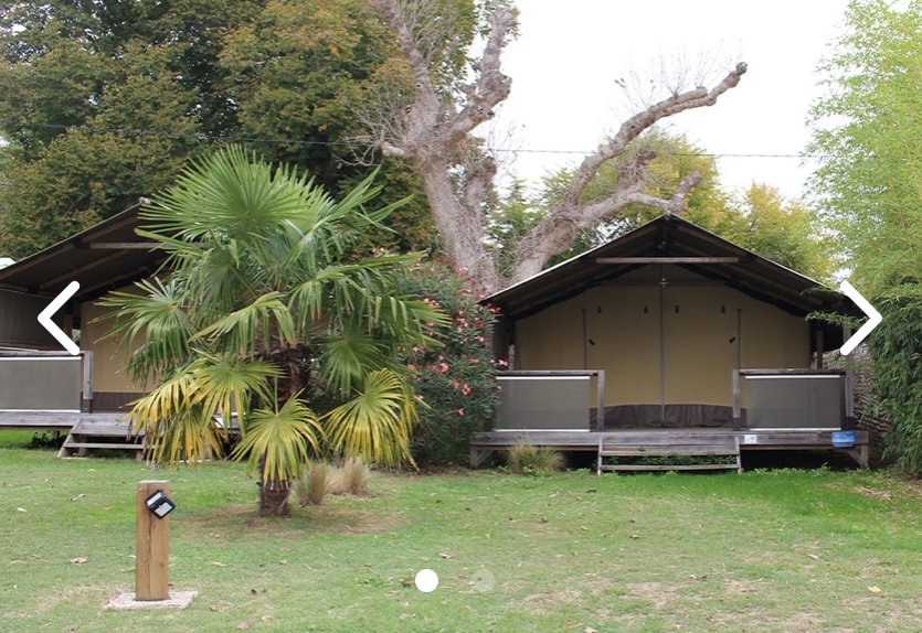 mobil home premium côté camping, terrasse couverte, télé,2 transats,