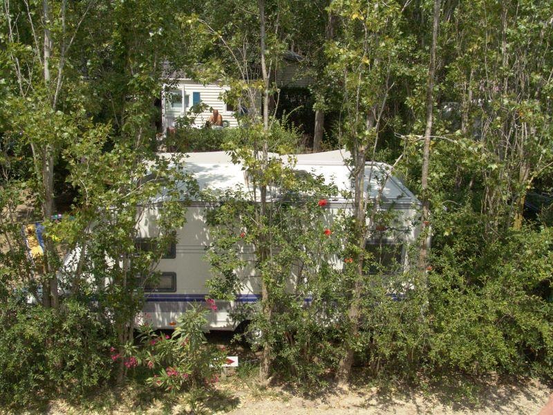 Die Stellplätze weit weg vom Pool sind angenehm ruhig und insgesamt gibt es genug Schatten.