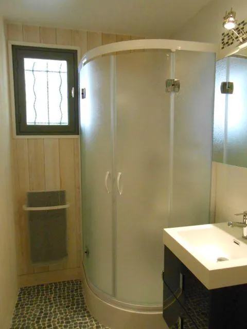Die sanitären Anlagen. WC und Duschen sind zusammen und es roch oft schlecht. Das Wasser der Duschen ist nur lauwarm.
