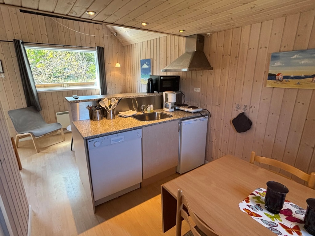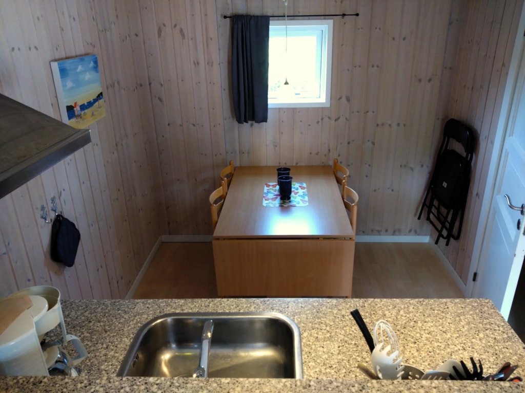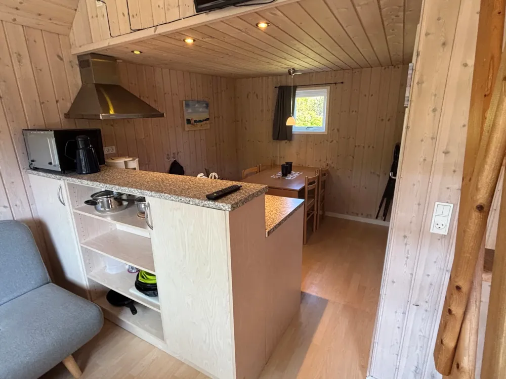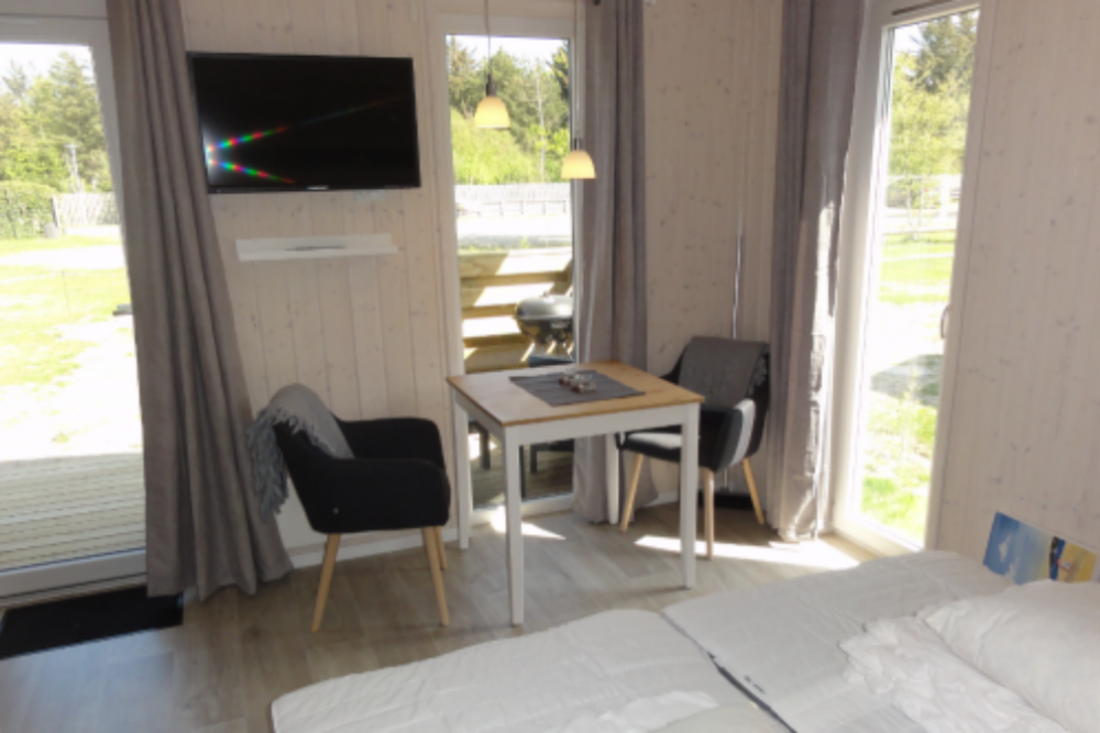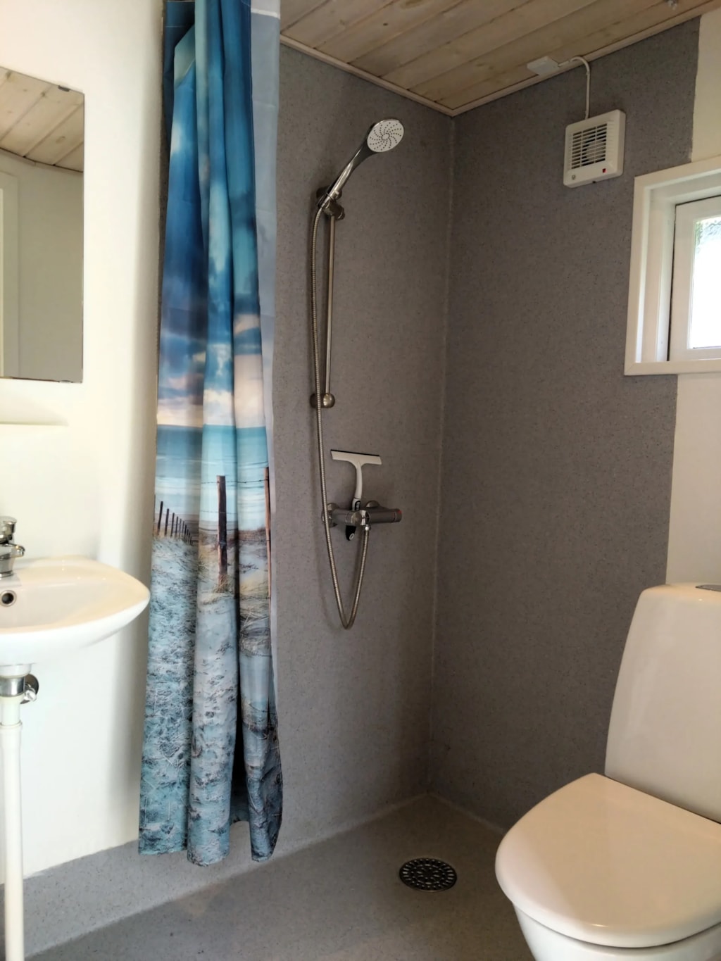 Direkt beim Zimmer befindet sich ein Sanitärgebäude mit Toiletten und kostenlosen Duschen, die modern und gepflegt sind. Draußen gibt es eine überdachte Terrasse mit Cafémöbeln, auf der du entspannen und die ruhige Umgebung genießen kannst. Kostenloses WIFI ist vorhanden, und du kannst in der Nähe des Zimmers parken. Die Zimmer sind ganzjährig geöffnet und eignen sich daher ideal für Radfahrer, Wanderer oder dich, wenn du eine schnelle und preiswerte Übernachtung suchst. Bei der Abreise muss das Zimmer aufgeräumt og gereinigt hinterlassen werden. Eine einfache Lösung mit der richtigen Balance zwischen Campingatmosphäre und Komfort.