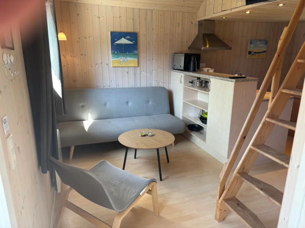 Eine helle und einladende Familienhütte, in der du echtes Campinggefühl mit dem Komfort eines eigenen Badezimmers und WCs kombinierst. Hier wohnst du in ruhiger Umgebung nahe der Natur und hast gleichzeitig eine feste und komfortable Basis für deinen Urlaub. Die Hütte ist für bis zu 5 Personen eingerichtet und verfügt über ein separates Schlafzimmer mit Doppelbett (140x200 cm), eine gemütliche Schlafempore mit zwei Boxmatratzen à 90 cm sowie ein Doppelschlafsofa im Wohnbereich. Die Küche ist in den Essbereich integriert, sodass ihr euch problemlos zu den Mahlzeiten versammeln könnt. Das Badezimmer ist mit Toilette, Waschbecken und Dusche ausgestattet und sorgt für zusätzlichen Komfort während des Aufenthalts. Kostenloses WIFI ist vorhanden, und du kannst direkt an der Hütte parken. Haustiere sind in dieser Hütte nicht erlaubt. Bei der Abreise muss die Hütte aufgeräumt und gereinigt hinterlassen werden, die Endreinigung kann jedoch dazugebucht werden. Hier bekommst du eine Urlaubsform, bei der du das Leben im Freien genießen kannst und gleichzeitig deine eigene ruhige und komfortable Basis hast.
