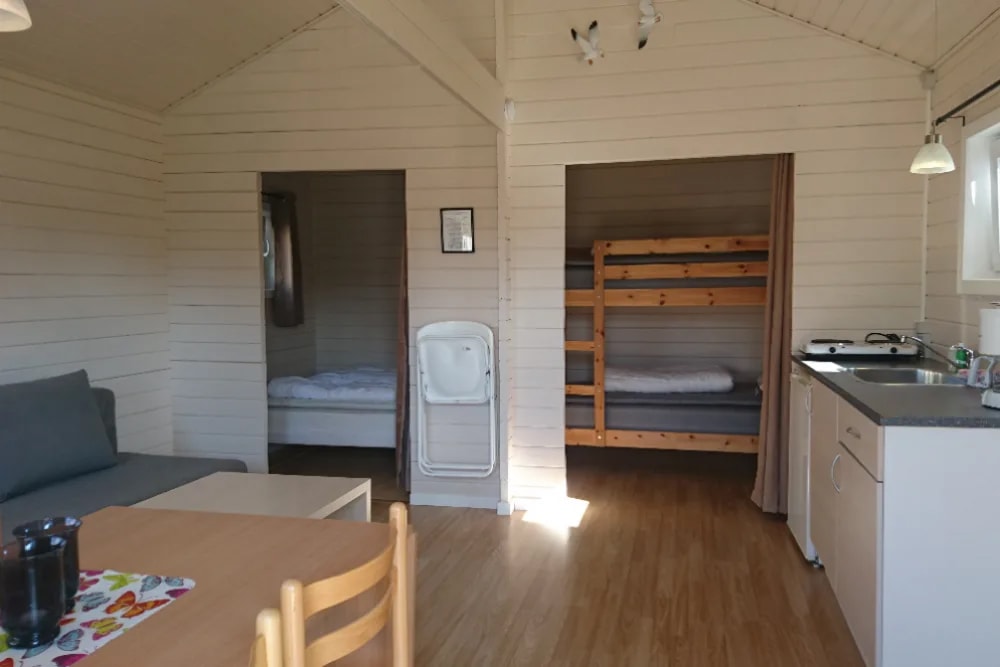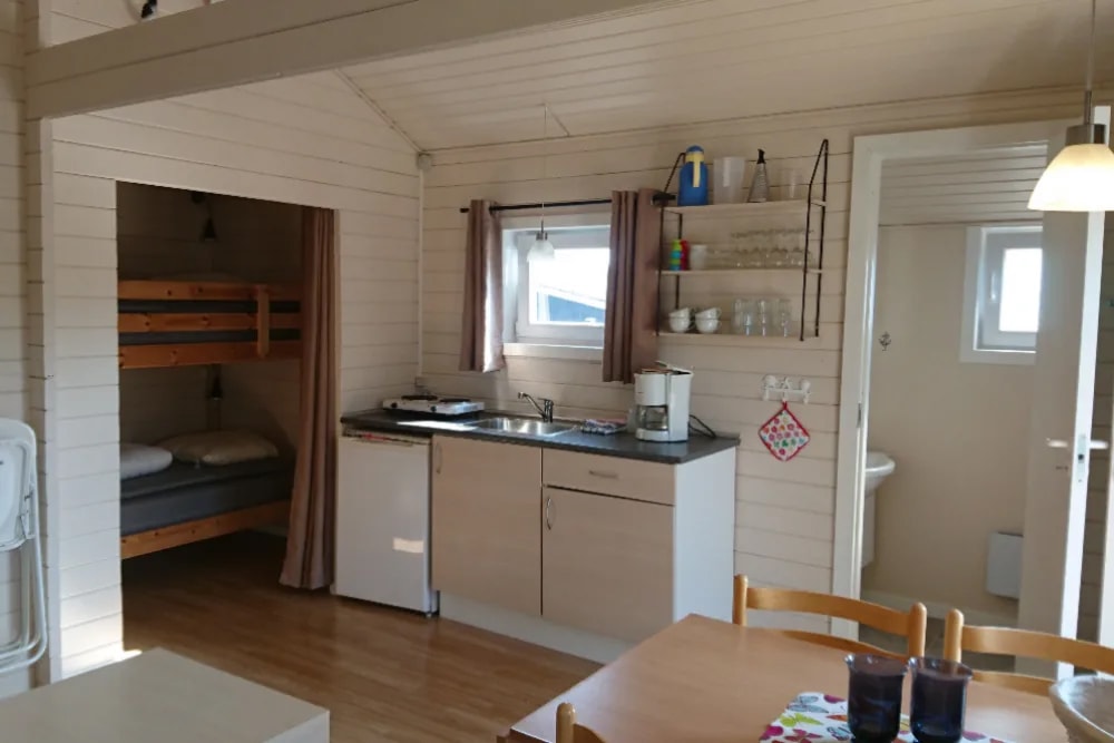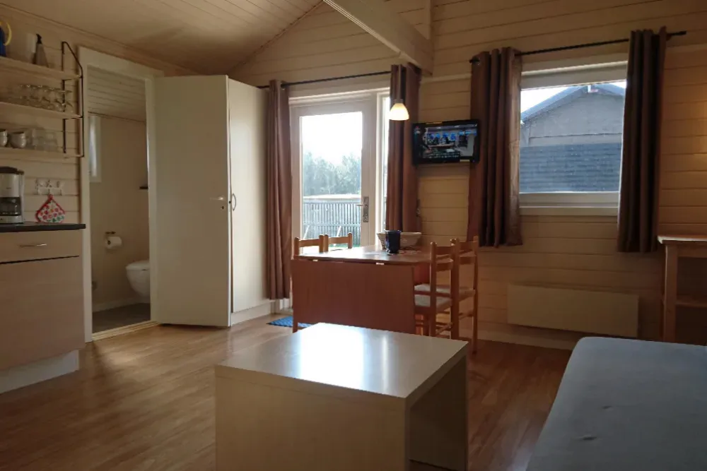 Das Zimmer liegt in der Nähe eines Sanitärgebäudes mit Toiletten und kostenlosen Duschen, sodass du schnellen Zugang zu den Einrichtungen hast. Kostenloses WIFI ist vorhanden, und du kannst in der Nähe des Zimmers parken. Die Zimmer sind ganzjährig geöffnet und eignen sich gut für eine einzelne Übernachtung – egal, ob du auf der Durchreise bist oder einfach einen Schlafplatz brauchst. Bei der Abreise muss das Zimmer aufgeräumt und gereinigt hinterlassen werden. Eine gute und unkomplizierte Lösung for Familien, die eine einfache Übernachtung suchen.