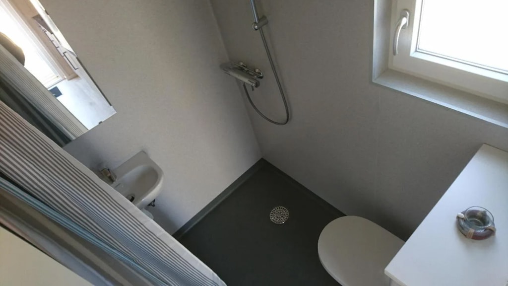 Eine schöne und geräumige Campinghütte, die dir das Gefühl eines Campingurlaubs mit etwas mehr Komfort gibt. Die Hütte wurde im Frühjahr 2018 renoviert und präsentiert sich hell und funktional. Sie ist mit 5 Schlafplätzen ausgestattet, verteilt auf ein Schlafzimmer und ein Zimmer mit Etagenbetten, und eignet sich daher gut für Familien. Im Wohnbereich findest du sowohl eine Küche als auch einen Essplatz sowie einen Fernseher zum Entspannen nach einem Tag im Freien. Die Hütte verfügt über ein eigenes WC, während sich die Duschen im nahegelegenen Sanitärgebäude mit kostenlosen Einrichtungen befinden. Das bietet eine gute Balance zwischen einfachem Campingleben und zusätzlichem Komfort. Kostenloses WIFI ist vorhanden, und du kannst direkt an der Hütte parken. Bei der Abreise muss die Hütte aufgeräumt und gereinigt hinterlassen werden, die Endreinigung kann dazugebucht werden. Hier bekommst du eine praktische und gemütliche Basis, in der du sowohl das Gemeinschaftsleben auf dem Platz als auch deine eigene Hütte genießen kannst.