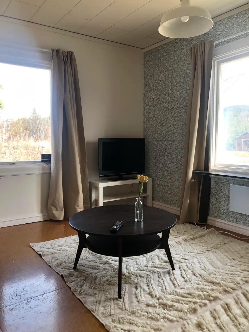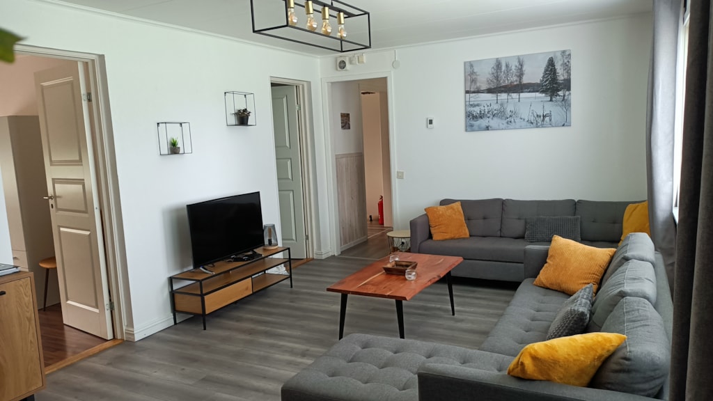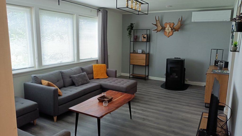 Das Ferienhaus Bispgården empfängt Sie mit einer warmen und behaglichen Atmosphäre und bietet Ihnen alle modernen Annehmlichkeiten für einen rundum angenehmen Aufenthalt. Es verfügt über vier gemütliche Schlafzimmer, zwei davon im Untergeschoss – ideal für eine erholsame Nacht nach einem erlebnisreichen Tag in Schweden. Das geräumige Wohnzimmer mit direktem Zugang zur Terrasse und zum Garten lädt zu gemütlichen Abenden ein. Eine voll ausgestattete Küche mit Essbereich steht für die Zubereitung köstlicher Mahlzeiten bereit, während Badezimmer und separates WC für den nötigen Komfort sorgen. Kostenloses WLAN, ein HD-Fernseher und Chromecast gehören ebenfalls zur Ausstattung und bieten Ihnen beste Unterhaltung.